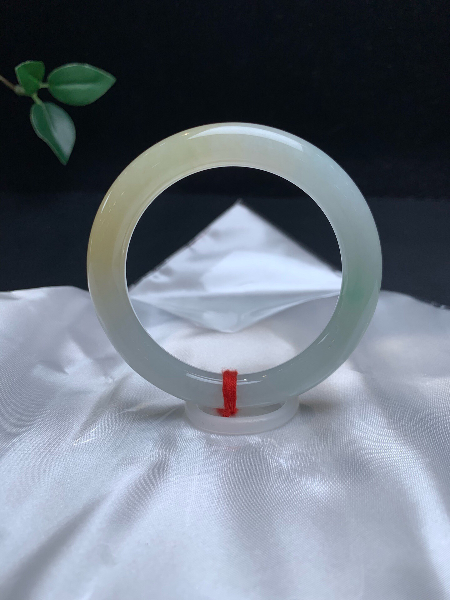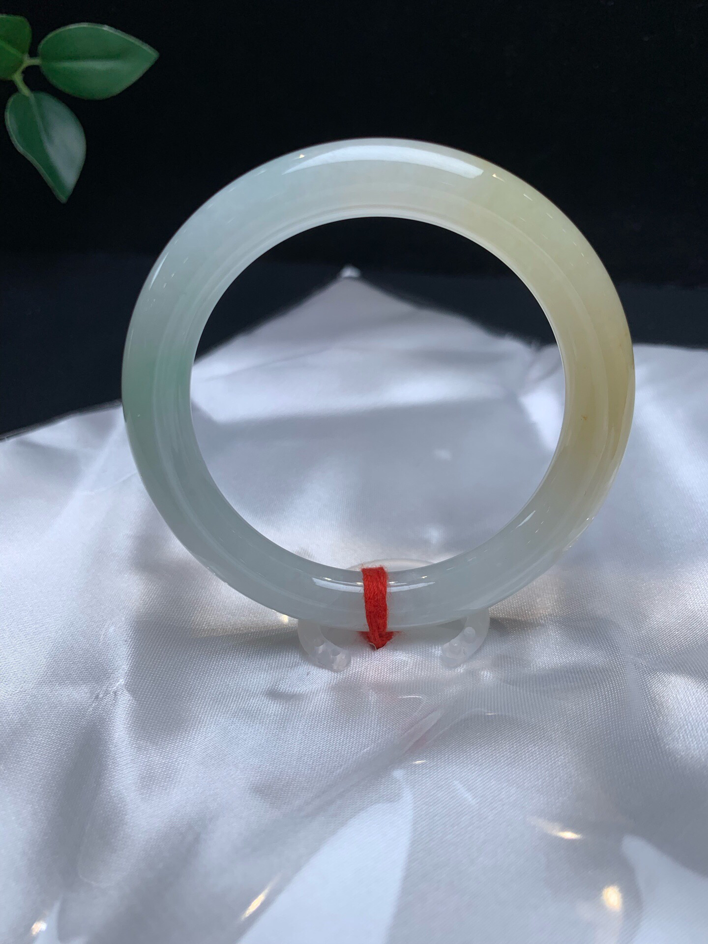 620027,52.5黄加绿细圆条,9.3mm,清秀纯净有特色,一截清新黄翡局部飘一些浅绿,整条润润的,干净完美,超值价💰32200 #优石客珠宝#香玉荟萃