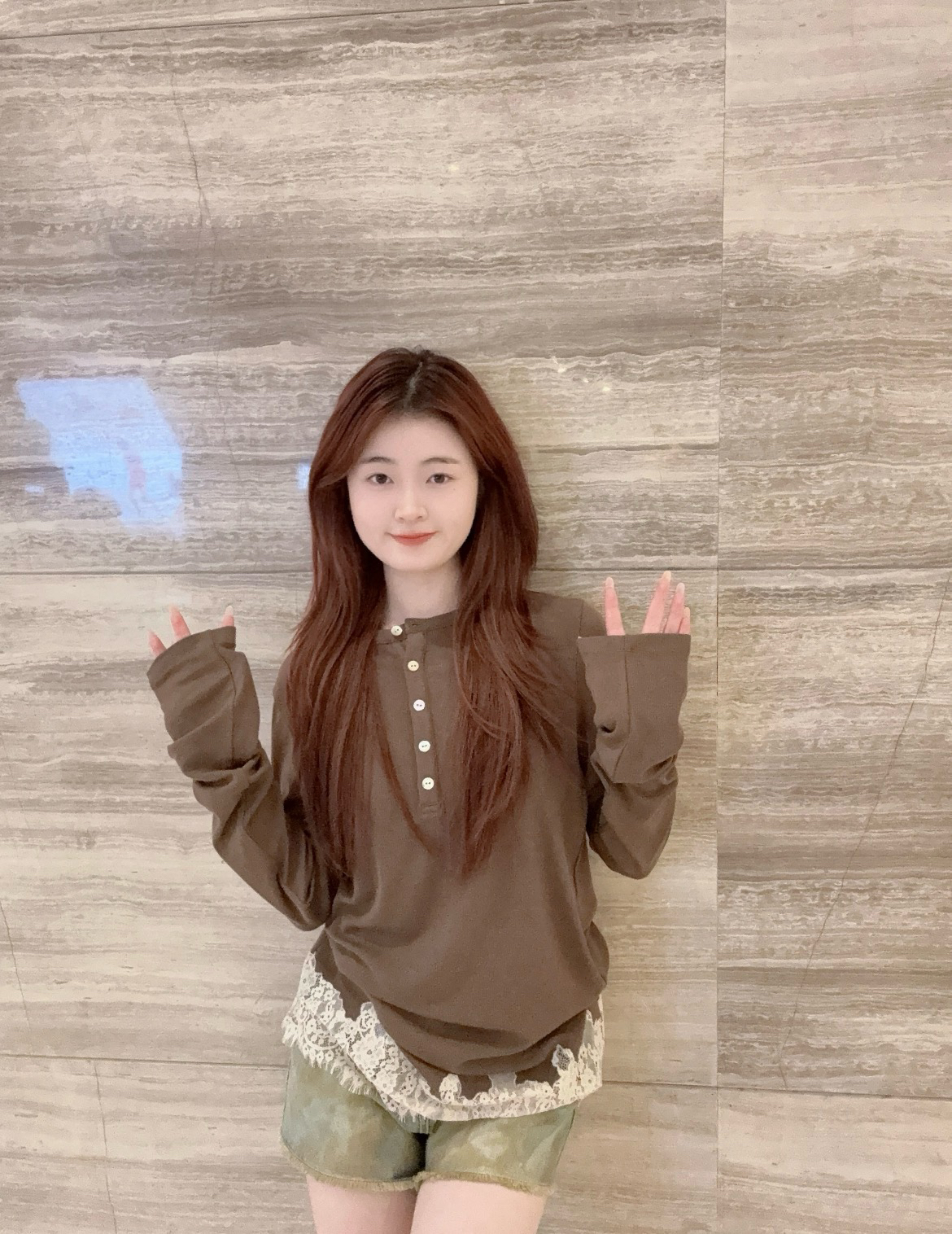 小V领+纽扣设计,微微露肤显精致,面料轻薄透气,外穿宽松外套,里面做内搭,蕾丝边露出来哦