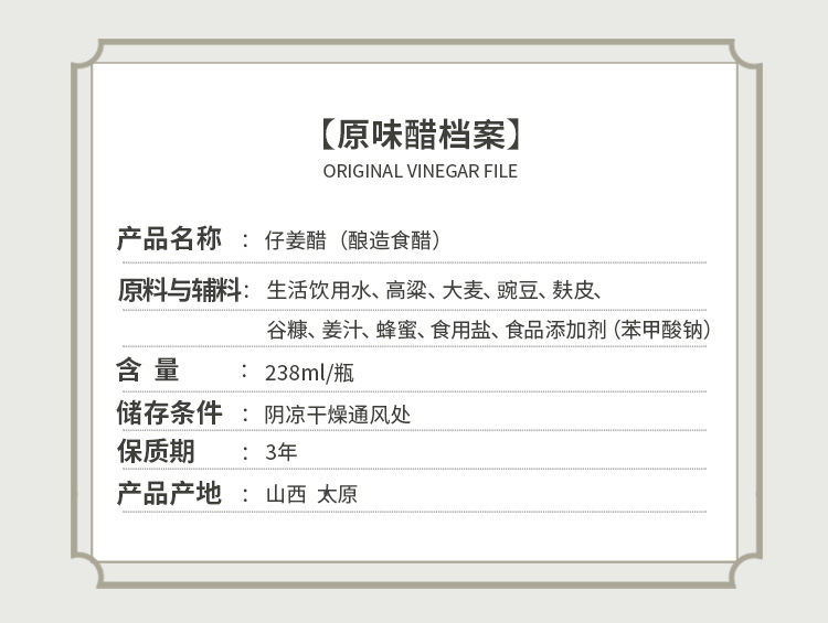 【美和居-始于1368】仔姜醋山西特产老陈醋添丁甜醋猪脚姜醋238ml
