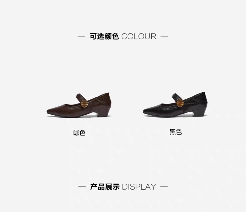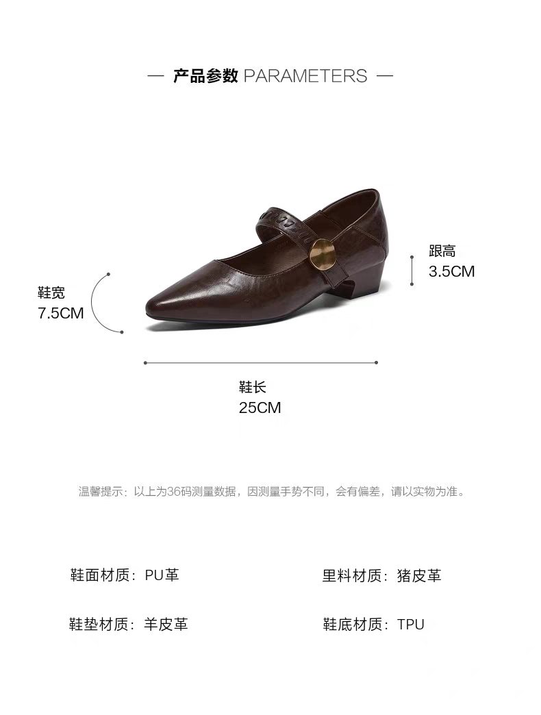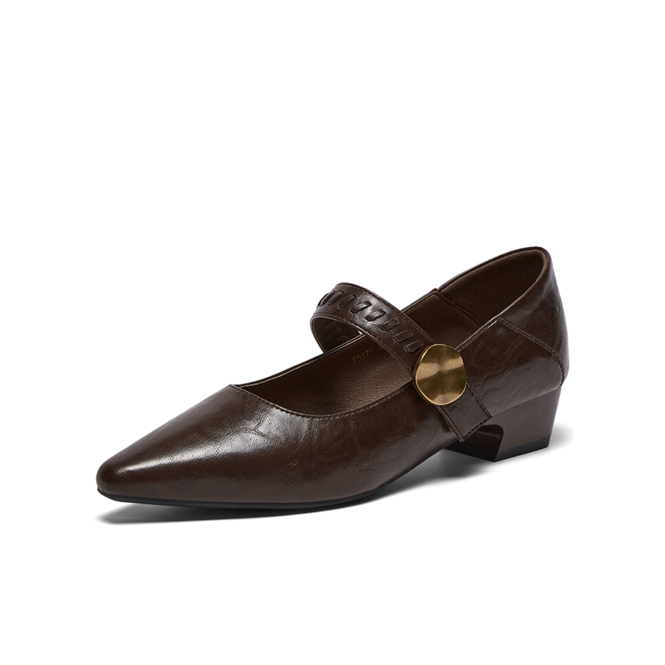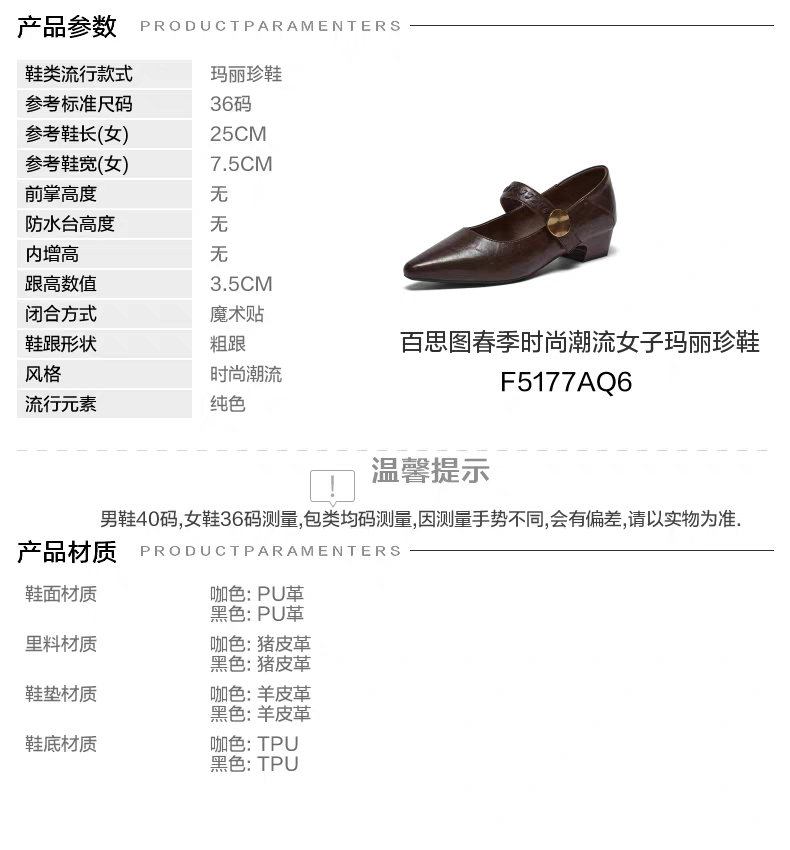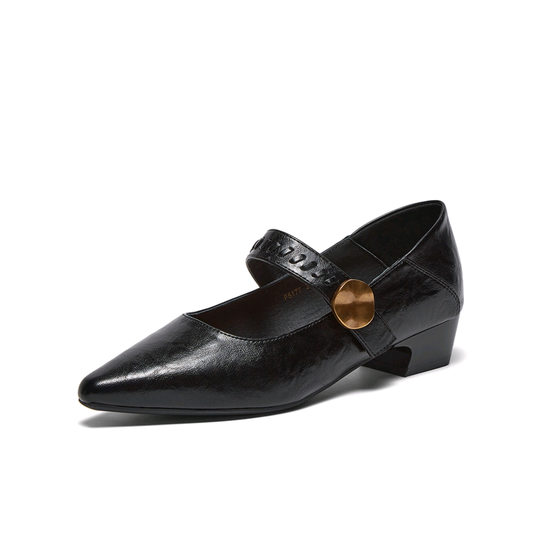 【云粉节】BF楼百思图2026春季新款尖头粗跟玛丽珍鞋小皮鞋女单鞋F5177AQ6吊牌价699,现价399