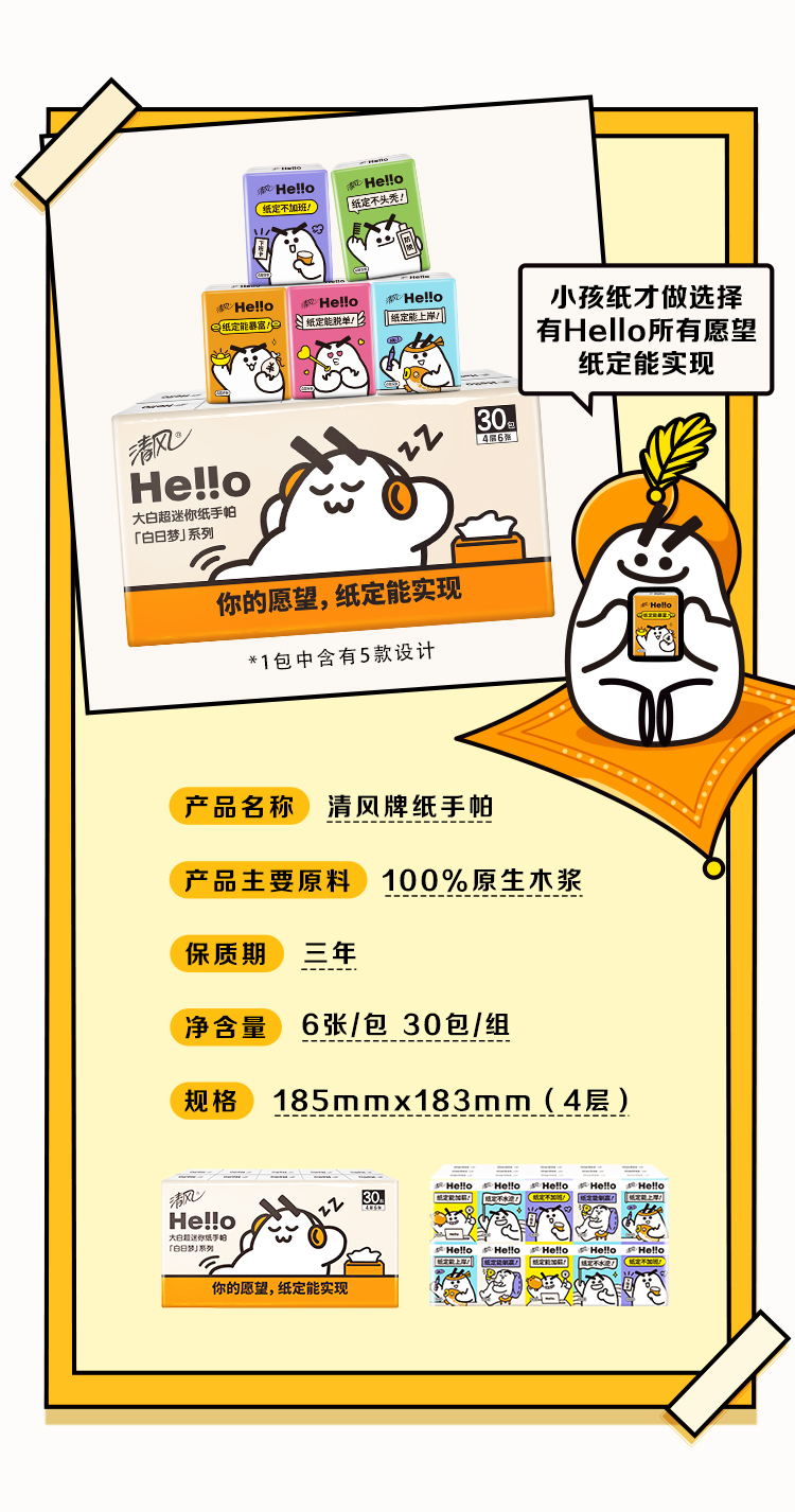 【官方自营】清风 Hello4层6张超迷你手帕纸30包