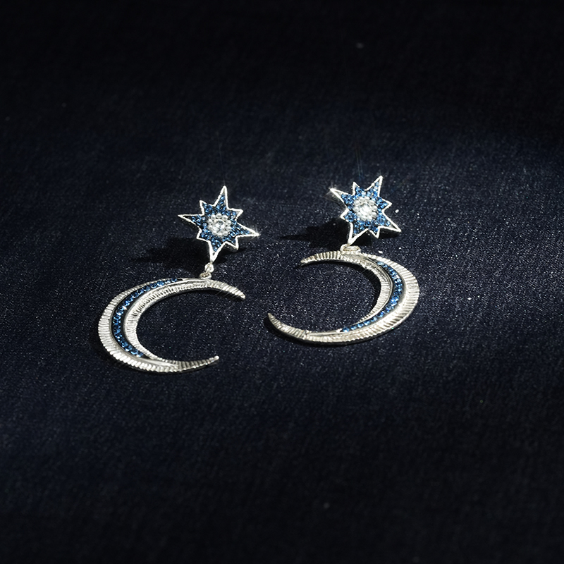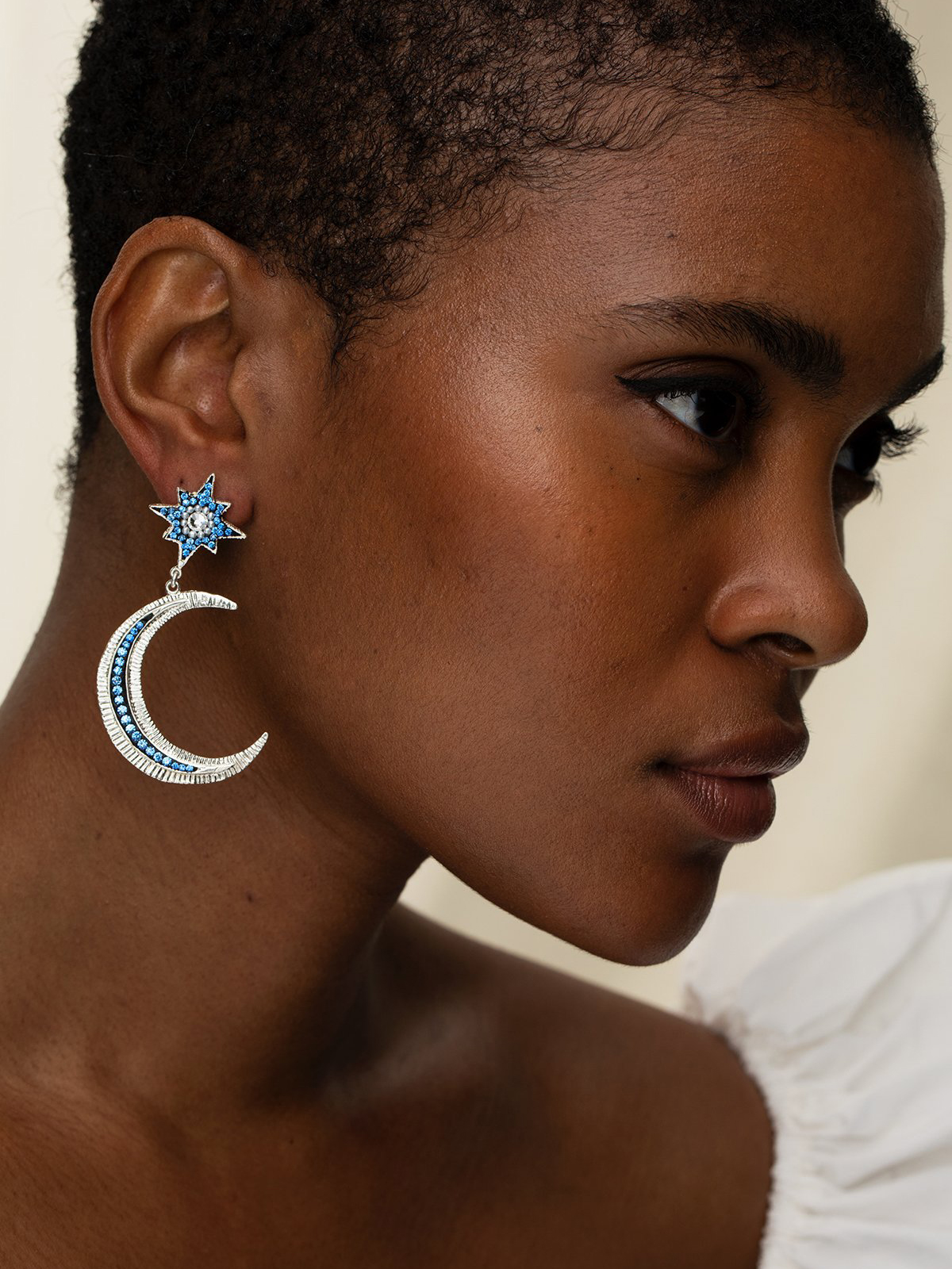 北京仓|SORU-Blue Crystal Orion-水晶 月亮 耳环[英国设计师]