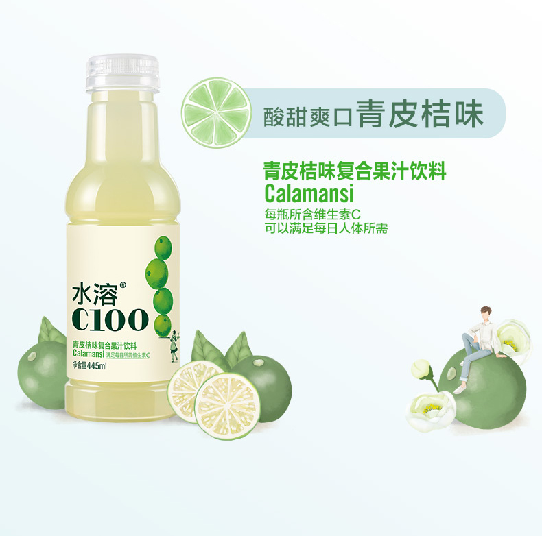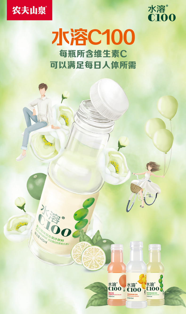 农夫山泉水溶C100青皮桔味复合果汁维生素饮料445ml/瓶