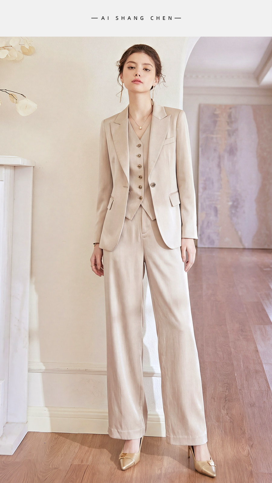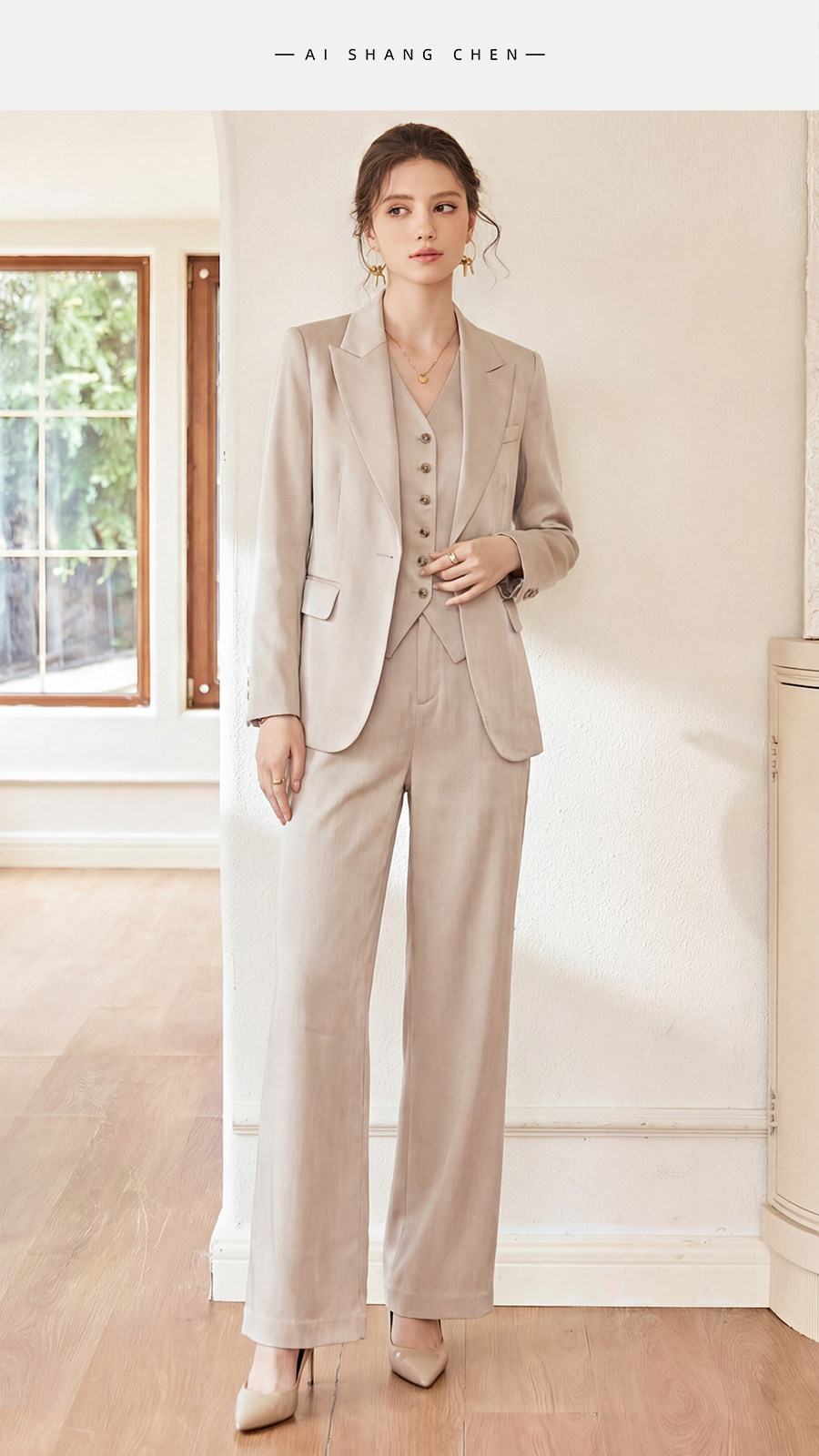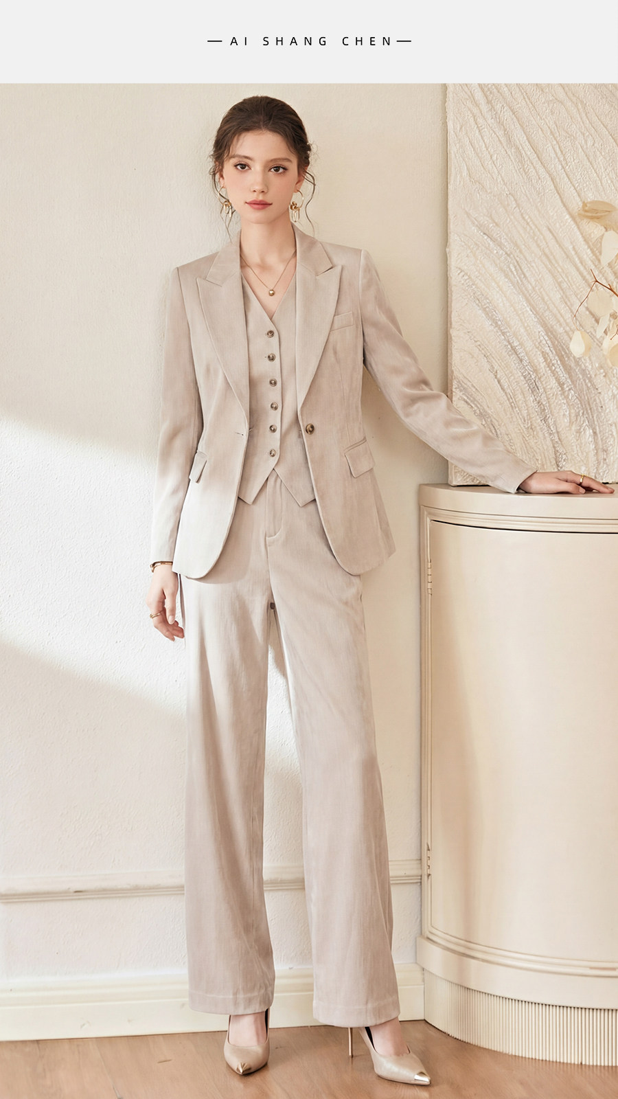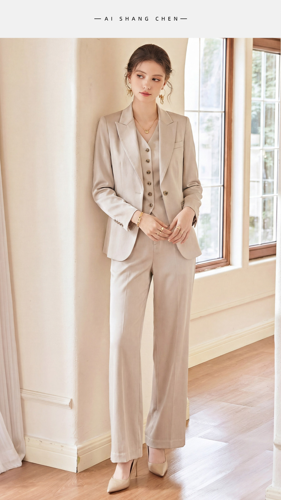 艾尚臣办公室商务高级感优雅通勤西装套装女三件套鎏金色老钱气质