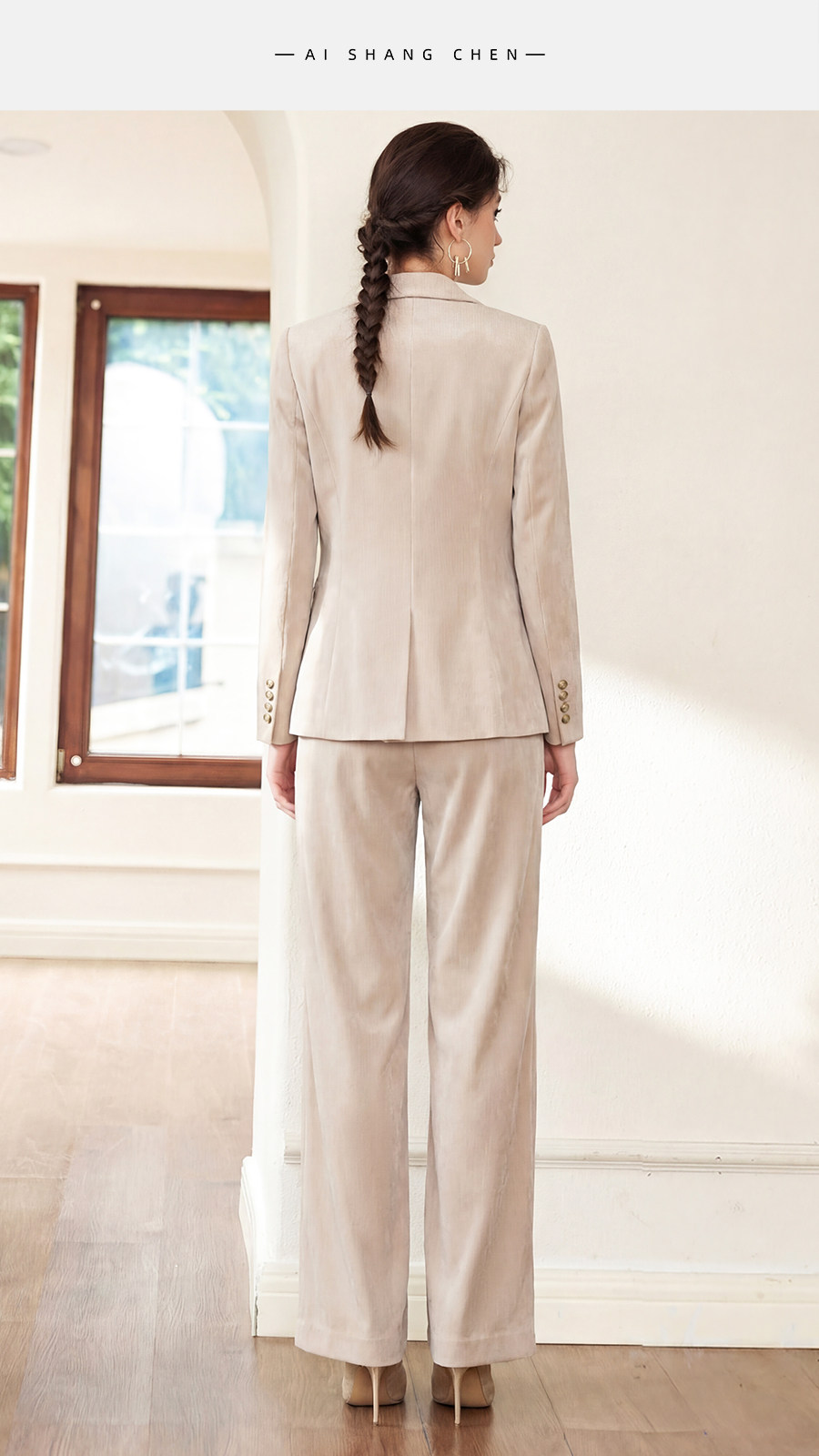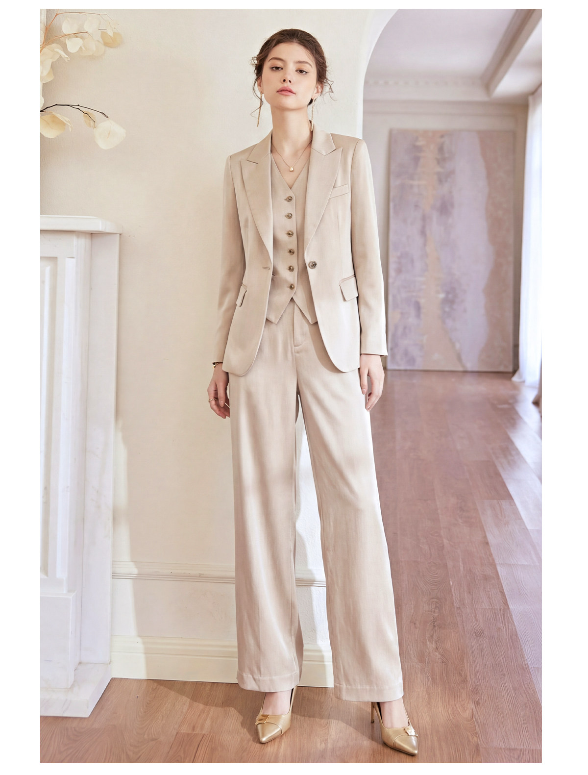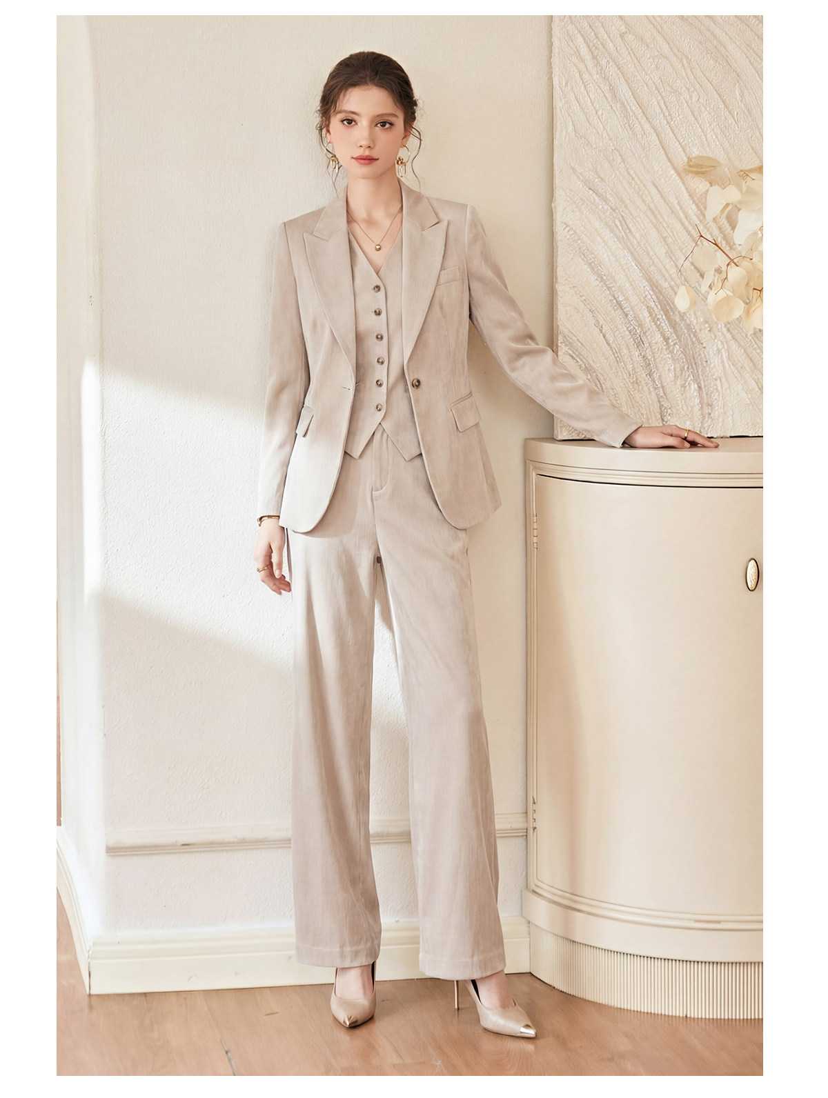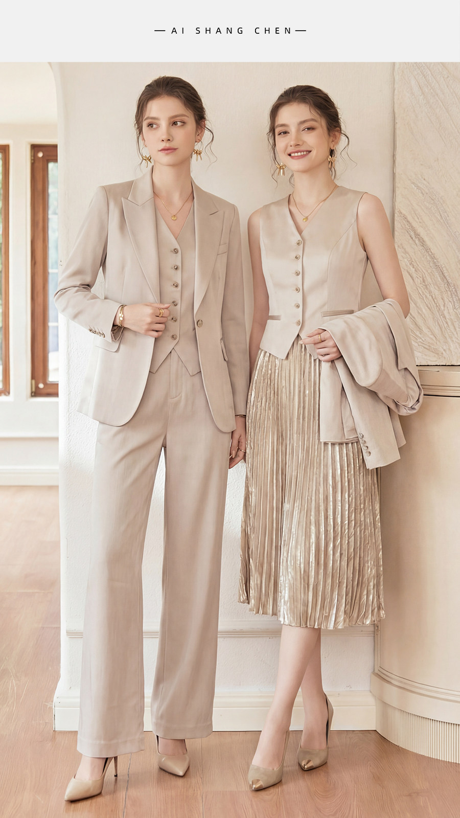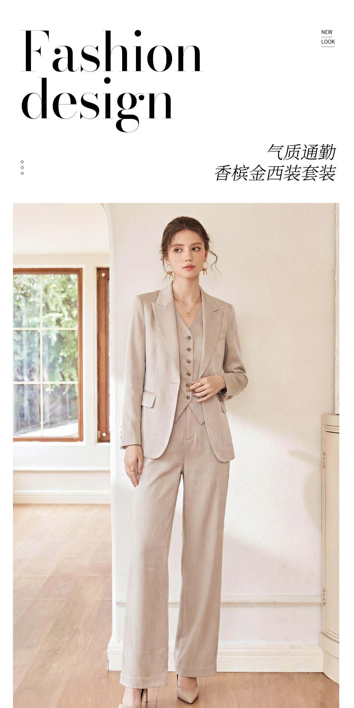 艾尚臣办公室商务高级感优雅通勤西装套装女三件套鎏金色老钱气质