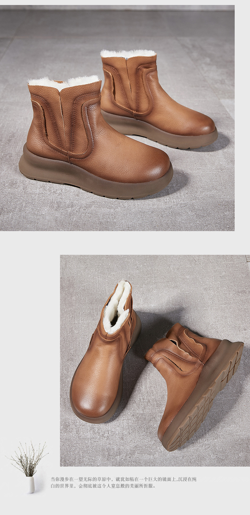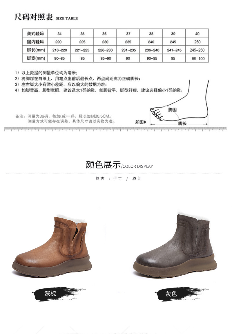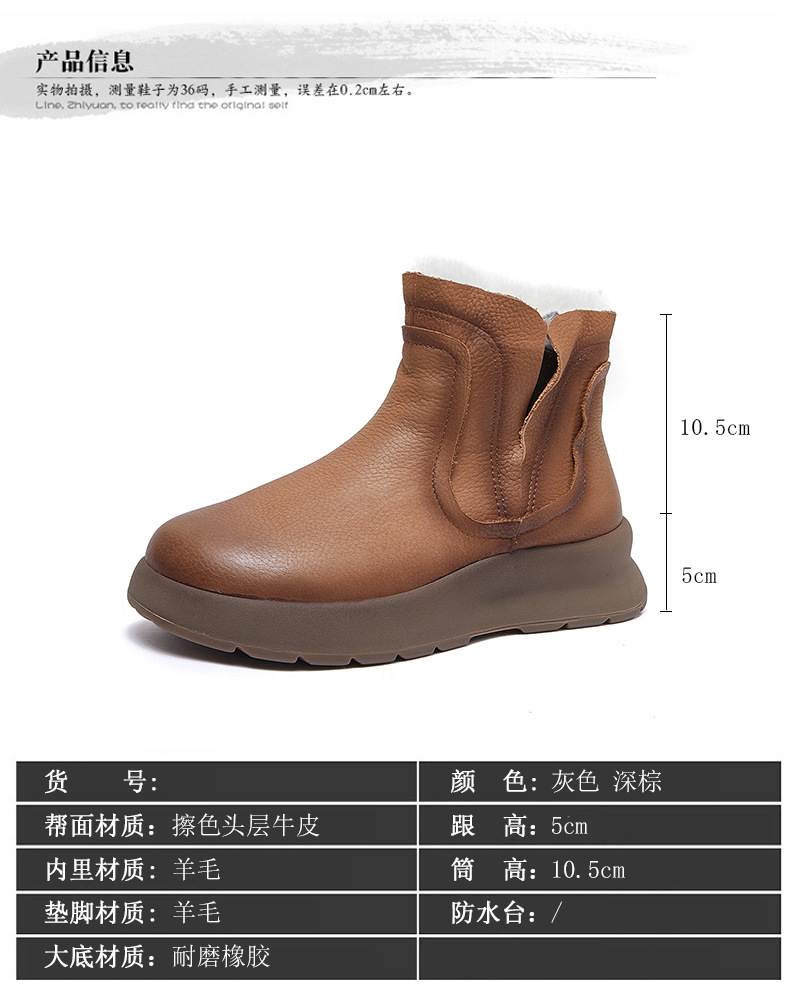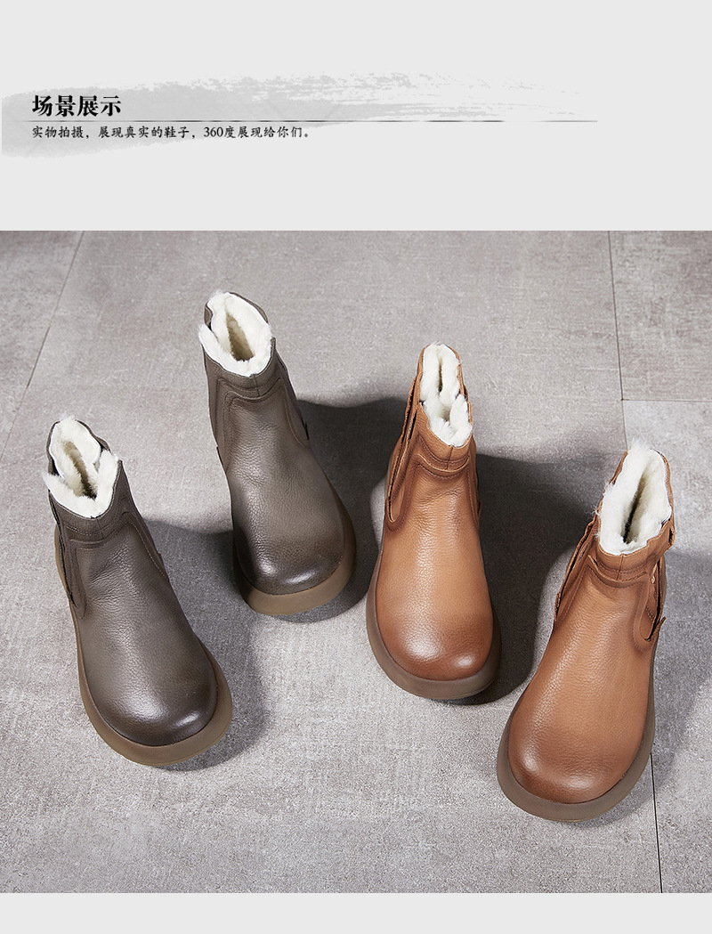 【冬装新品】2024真皮女棉靴冬季新款圆头加厚保暖纯羊毛复古手工女靴!