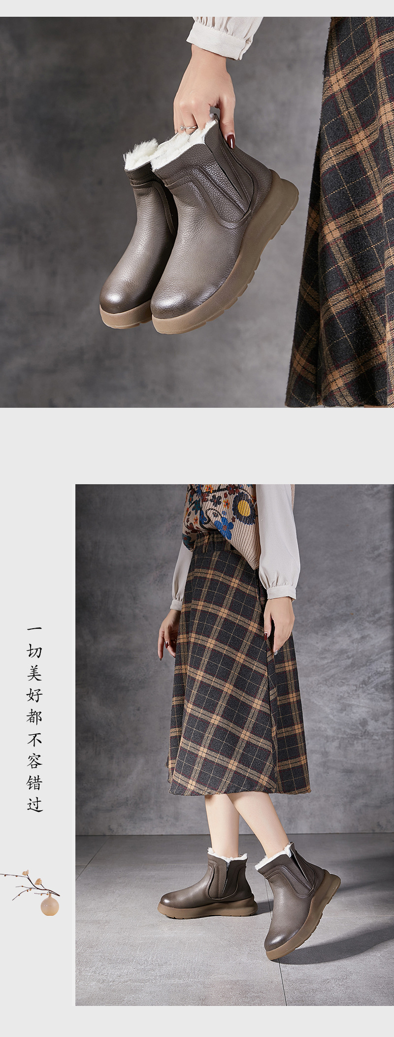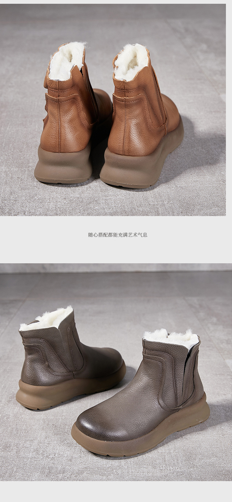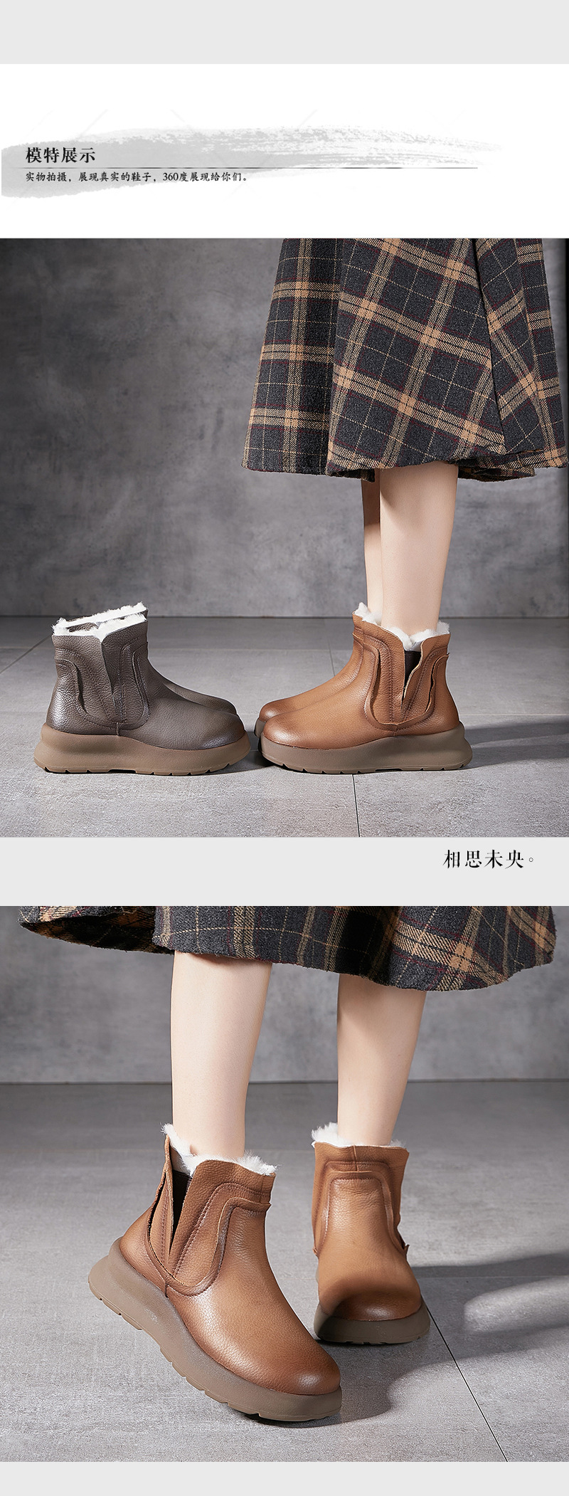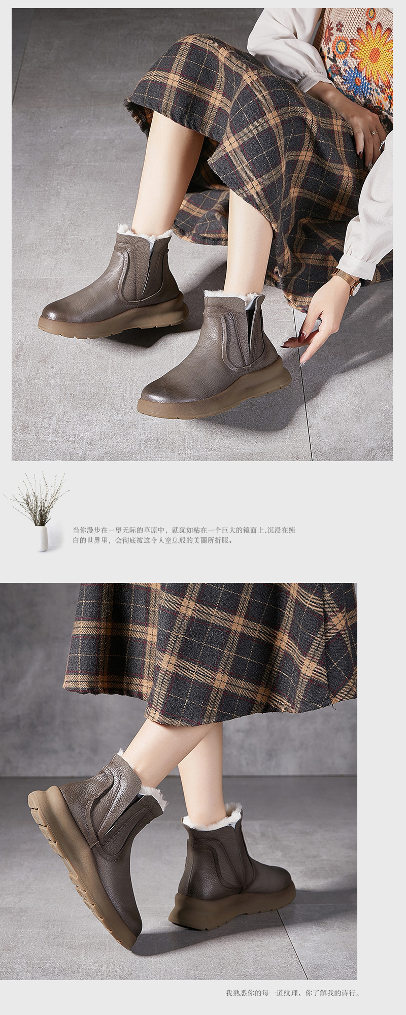 【冬装新品】2024真皮女棉靴冬季新款圆头加厚保暖纯羊毛复古手工女靴!