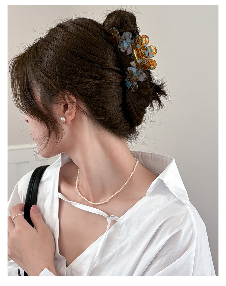【新款女法式❗️高级感醋酸花瓣发夹】盘发鲨鱼夹,简约气质抓夹,多发量也能夹住,耐摔耐用,后脑勺发抓夹子女鲨鱼夹鸭嘴夹发饰品L