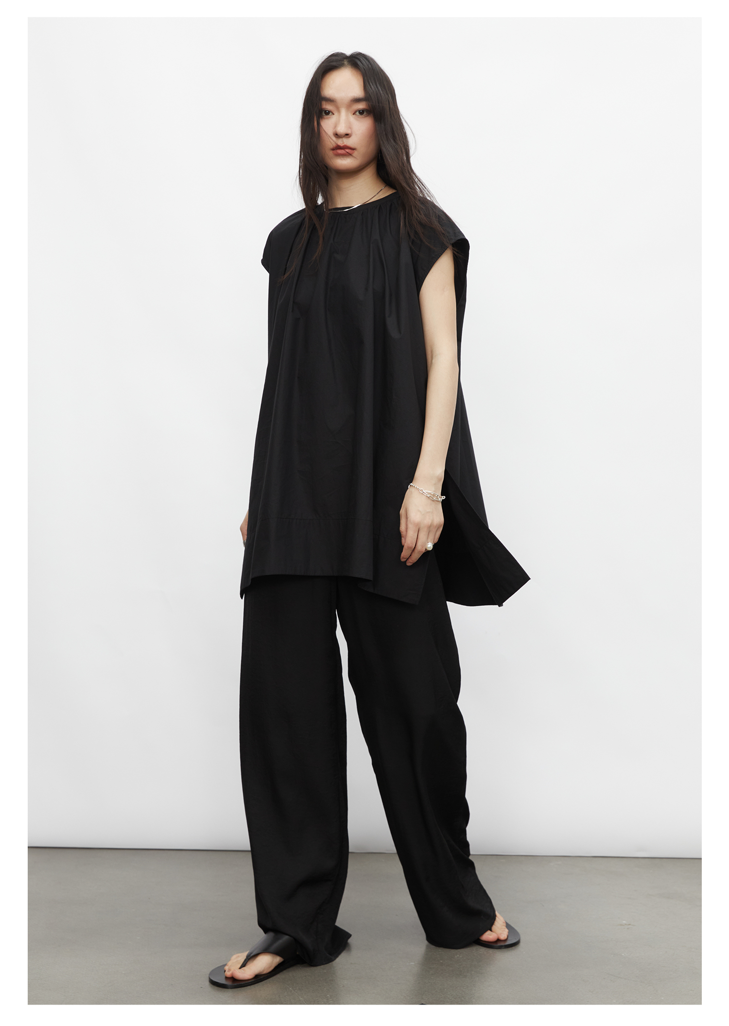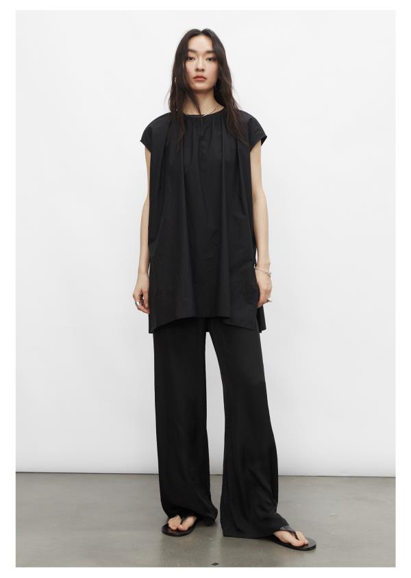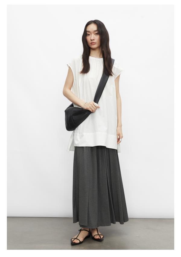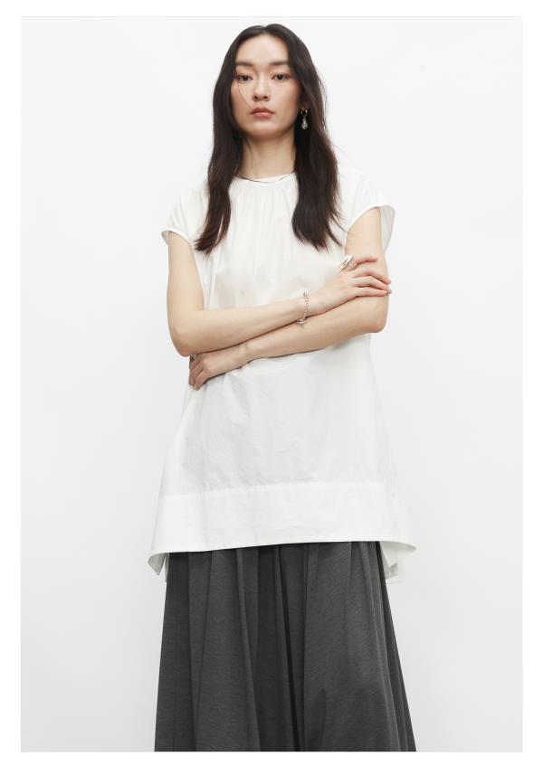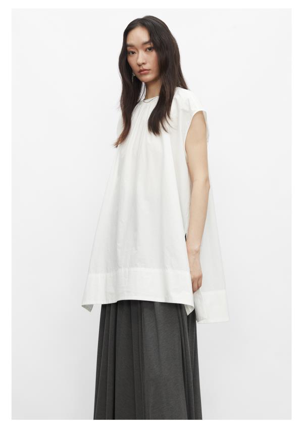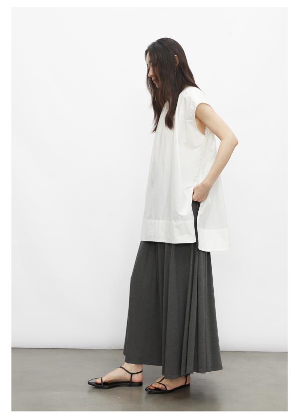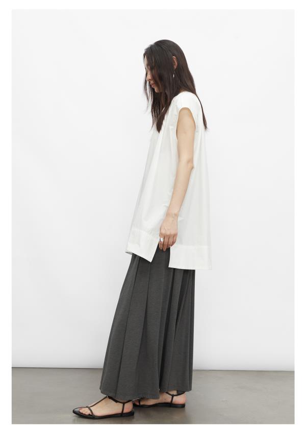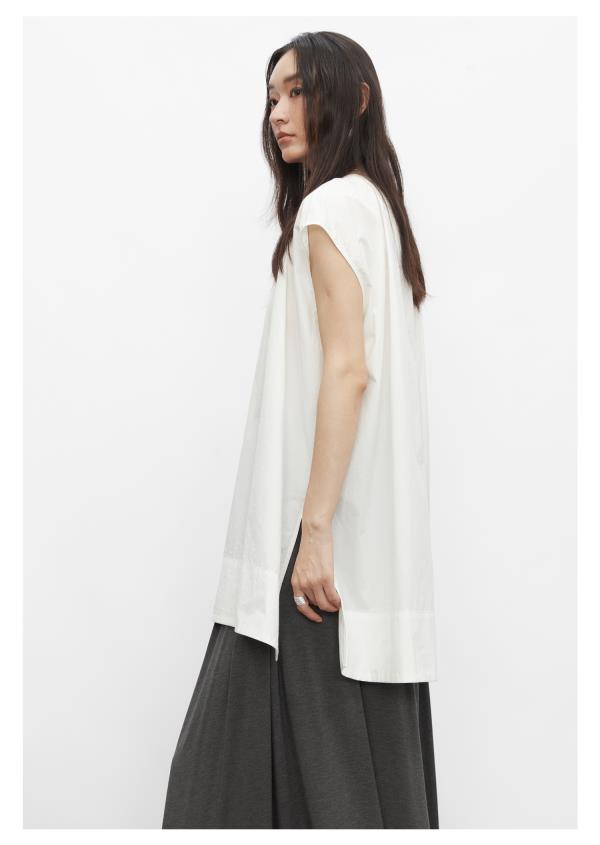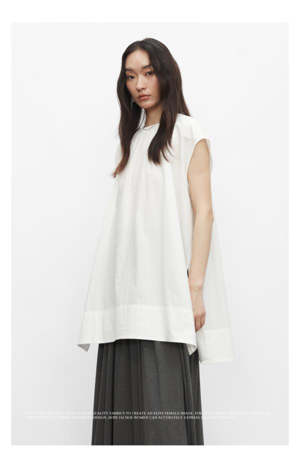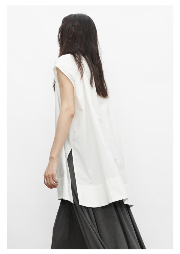 棉仓3431504010-IACHOE 圆领开叉无袖衬衫