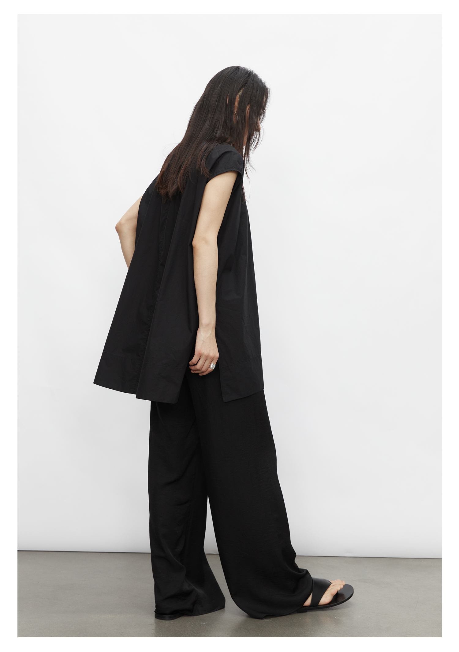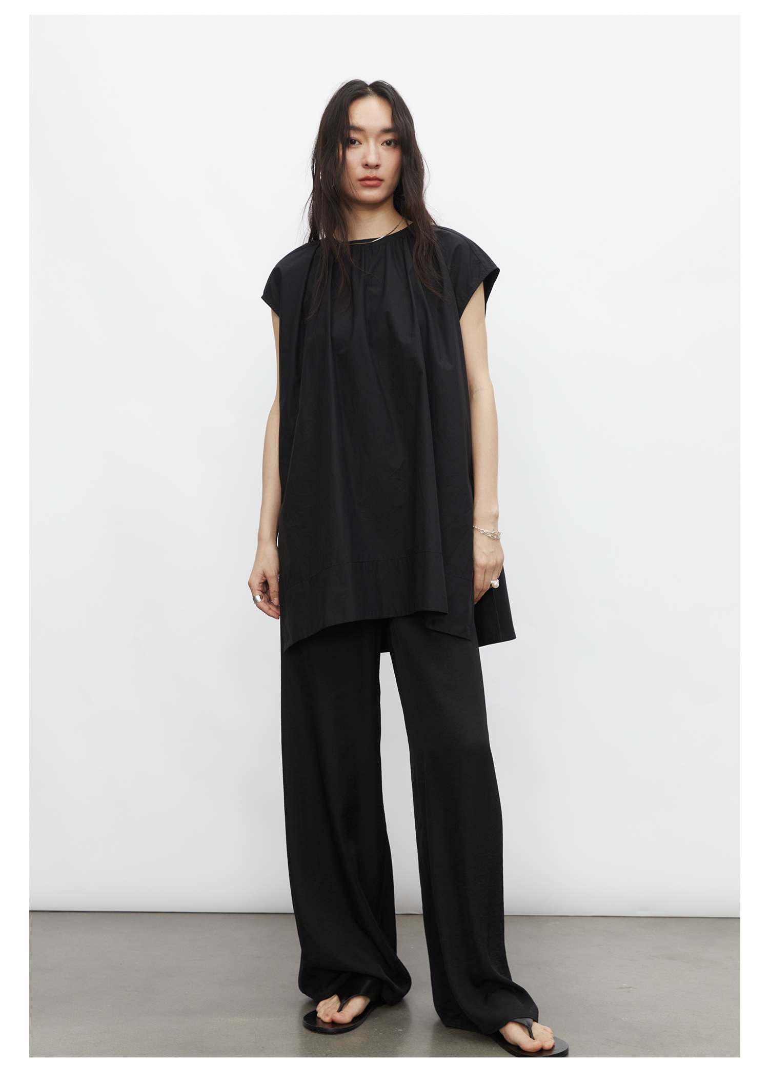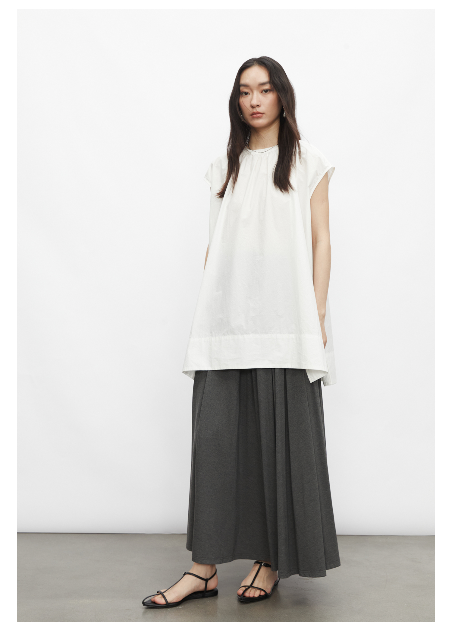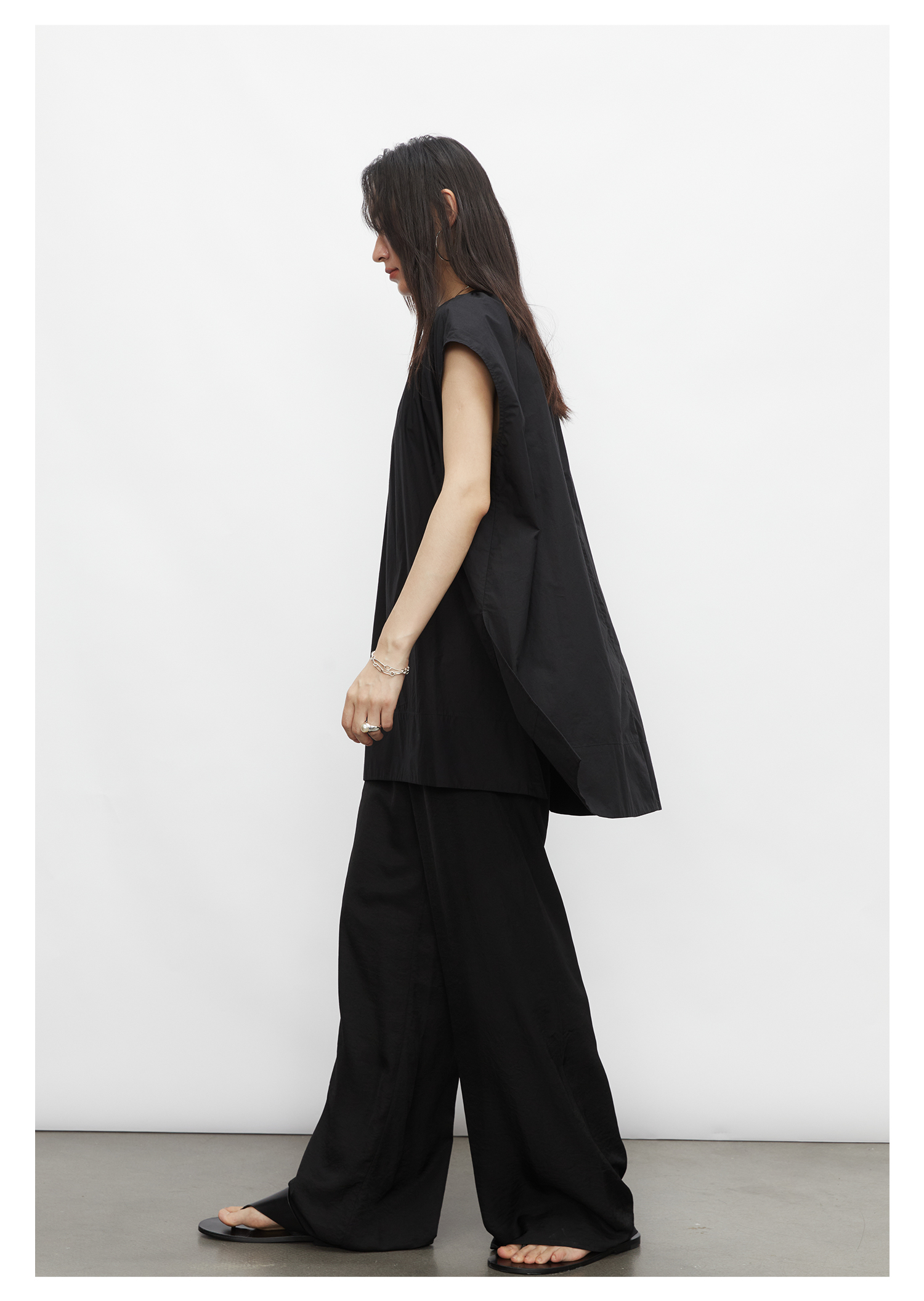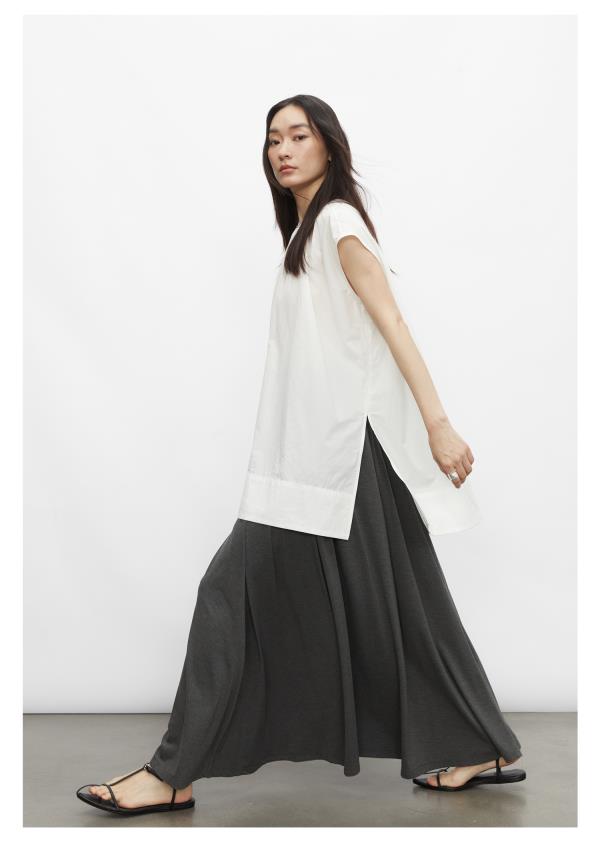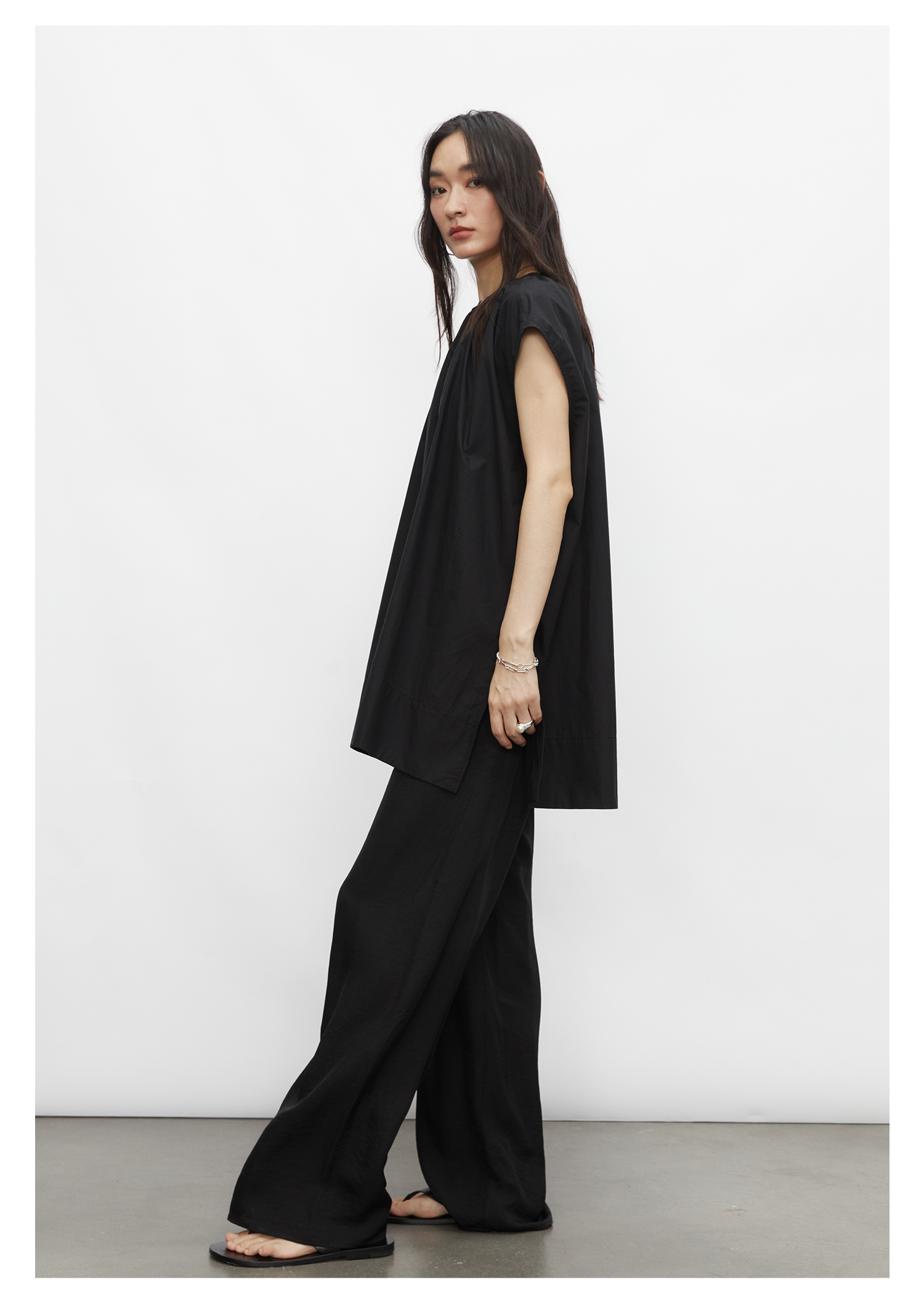 棉仓3431504010-IACHOE 圆领开叉无袖衬衫