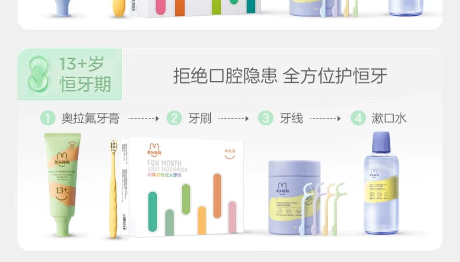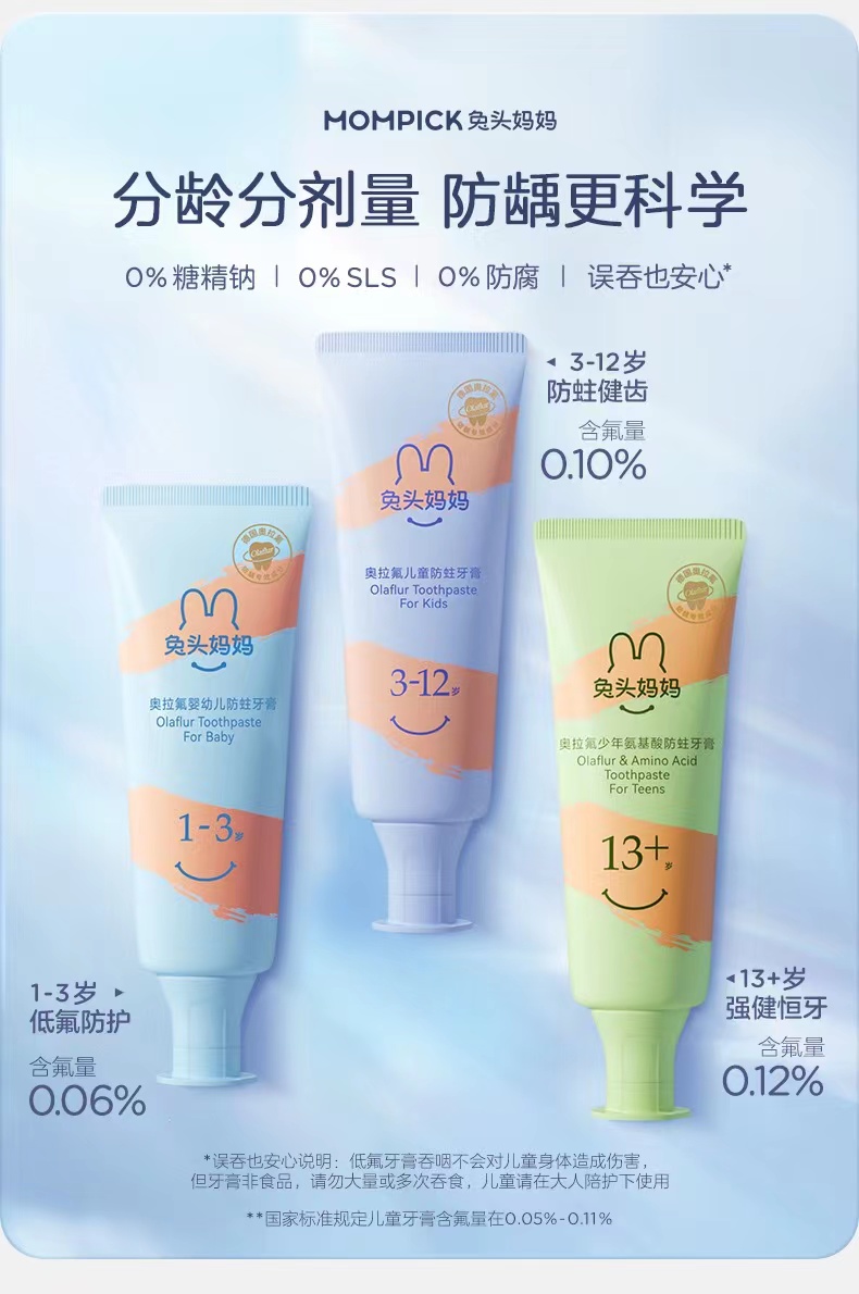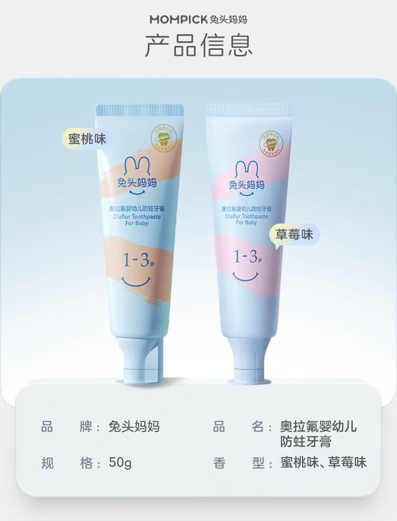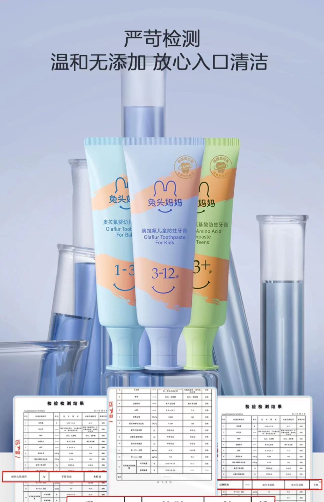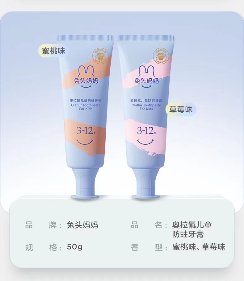4楼Eubelle欧蓓 兔头妈妈奥拉氟儿童牙膏50g*2支 1-3岁含氟 吊牌价:79.8元 活动价:39.9元