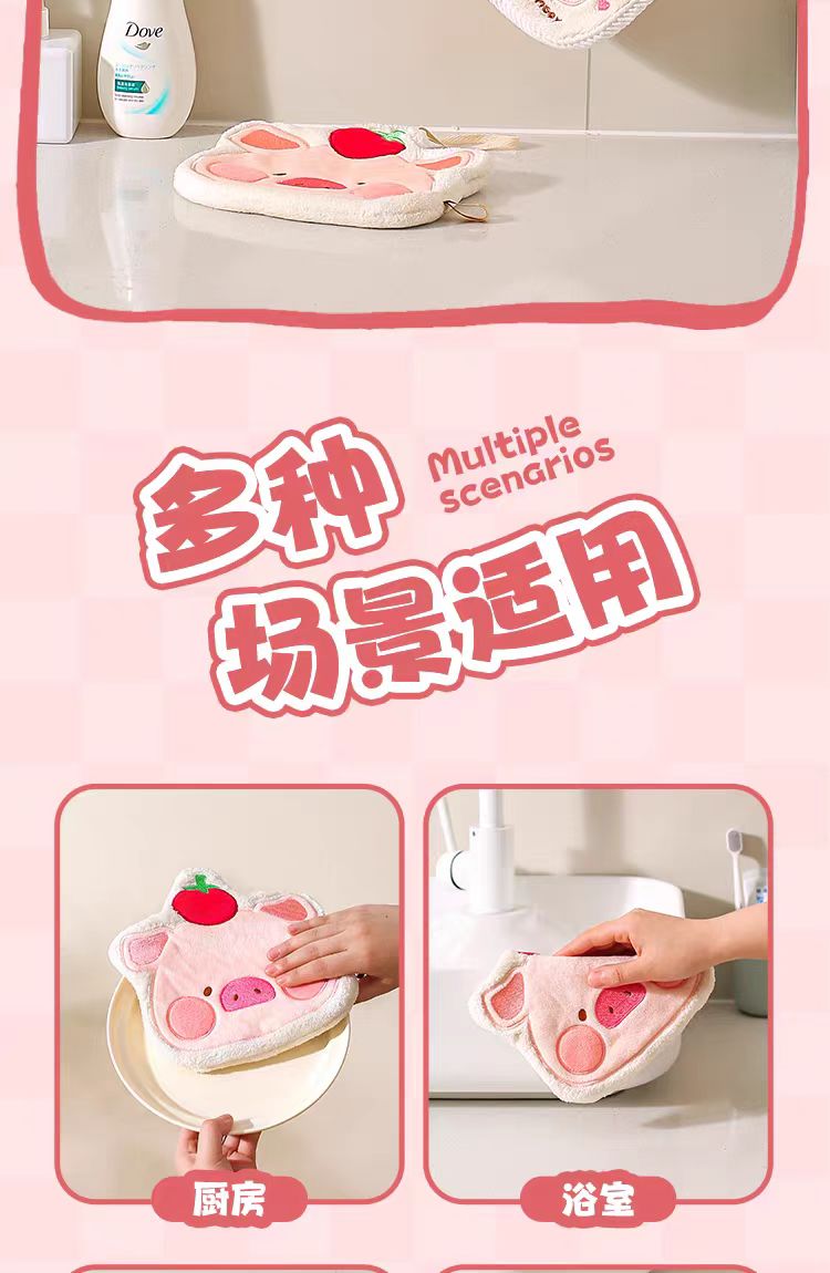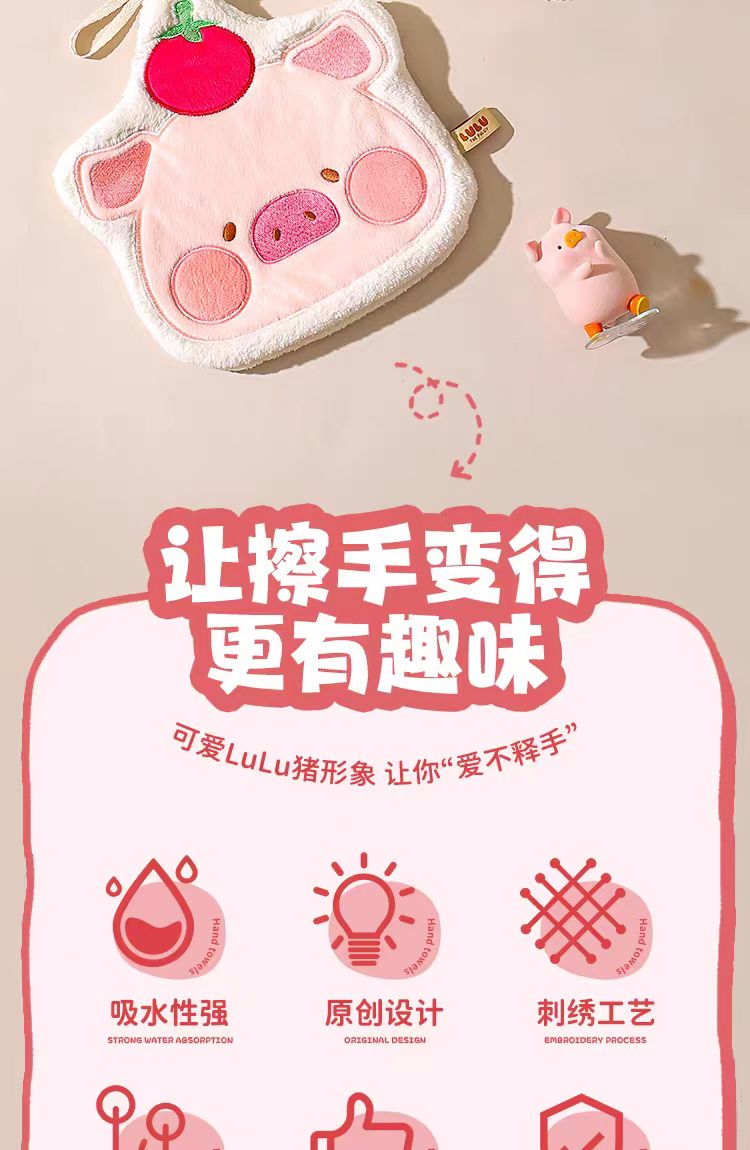 4楼Eubelle欧蓓 川岛屋&lulu猪联名 擦手毛巾挂式 高颜值厨房卫生间 活动价:17.9元