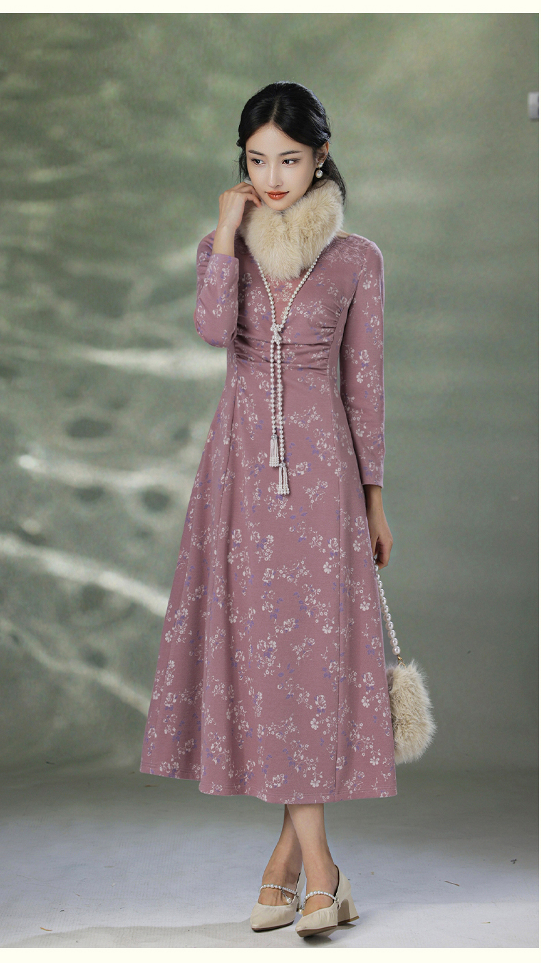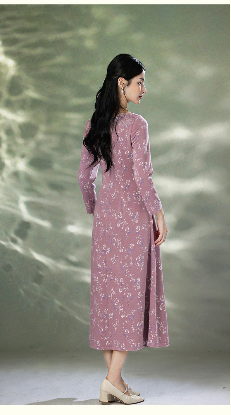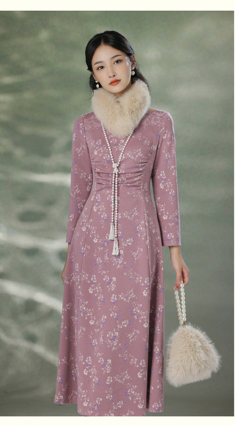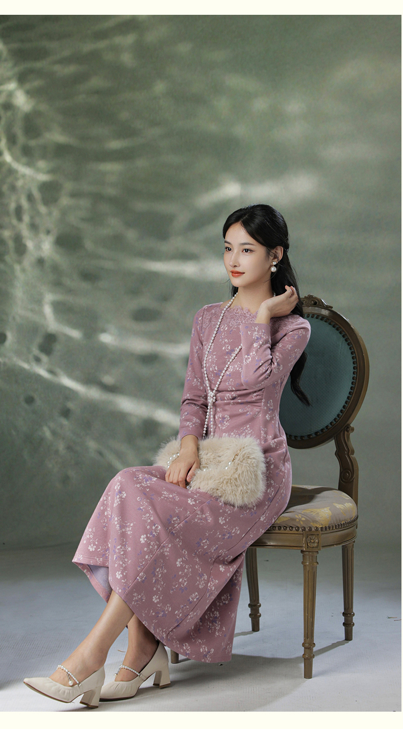 逸红颜池荔2025秋冬新款温柔淑女款弹力一字肩大摆复古连衣长裙女