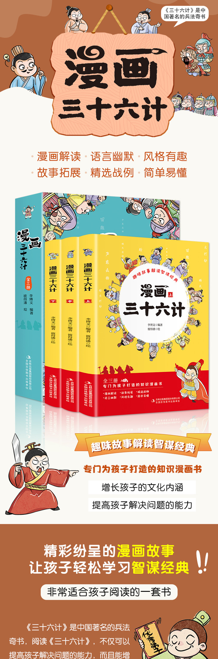 漫画三十六计全3册正版 小学生版儿童漫画版36计幼儿版故事绘画趣读三十六计三四五六年级语文阅读课外书彩色图解计谋智慧经典书目