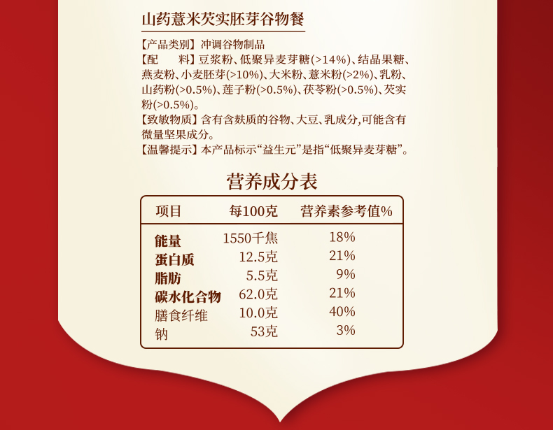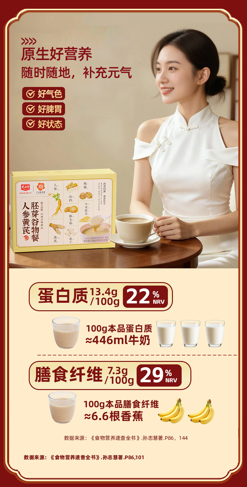 精力沛山药紫薯胚芽燕麦片 即食冲饮谷物早餐麦片 铁罐装728g