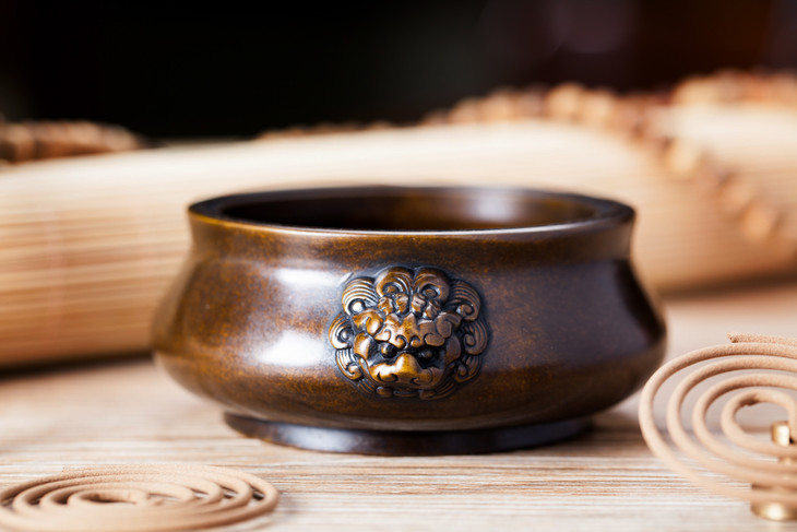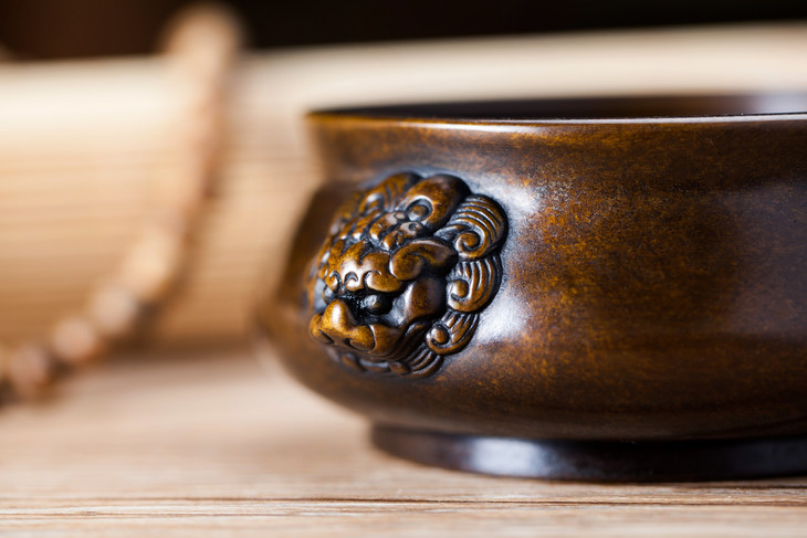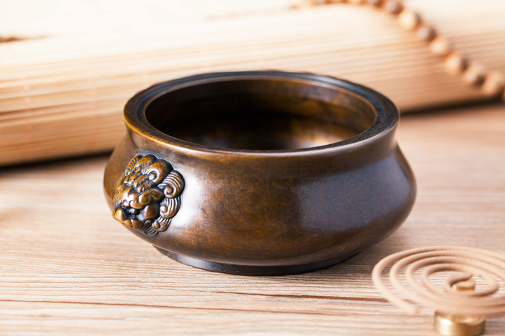 双耳狮头铜炉(黄铜)