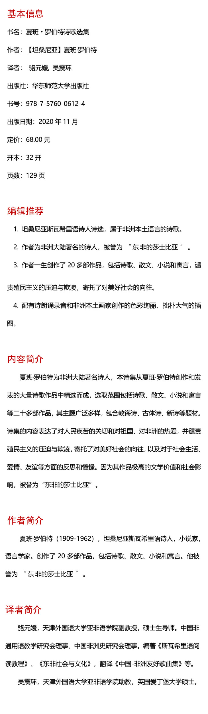 夏班·罗伯特诗歌选集 六点非洲系列 非洲本土语言诗歌 坦桑尼亚斯瓦西里语诗人 外国诗歌 正版 华东师范大学出版社