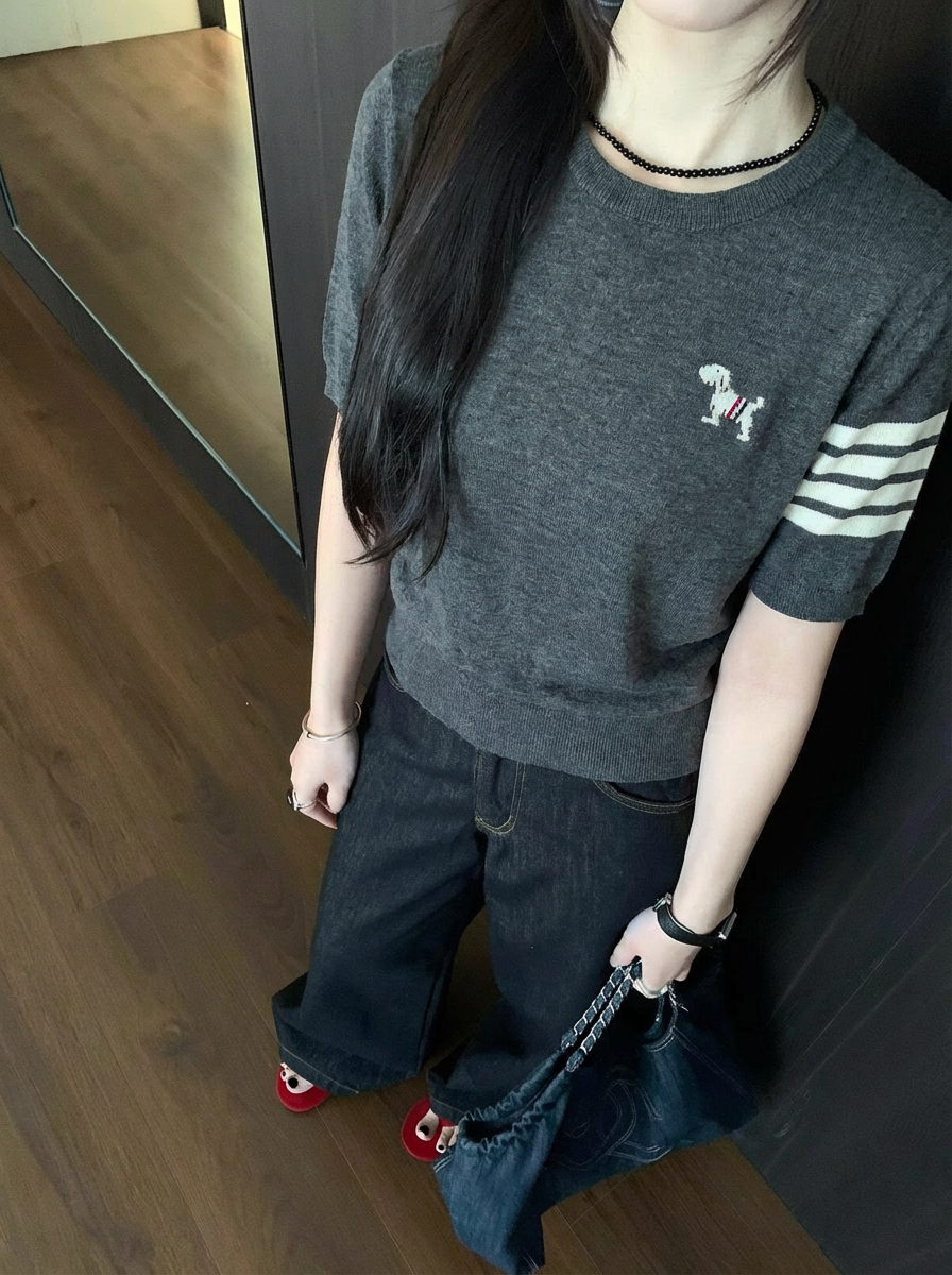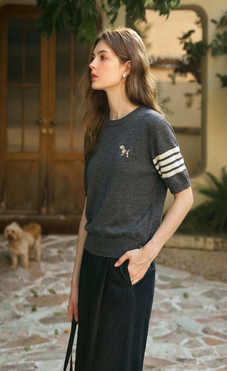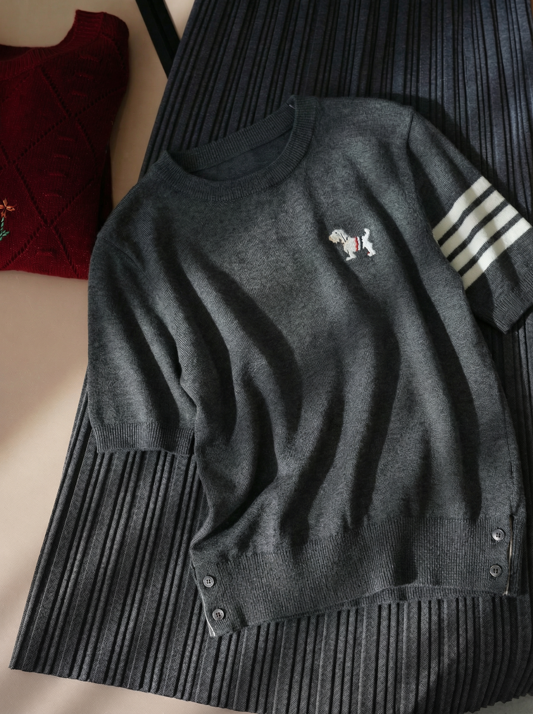 后背大只西高地小狗提花 + 胸口迷你小狗刺绣