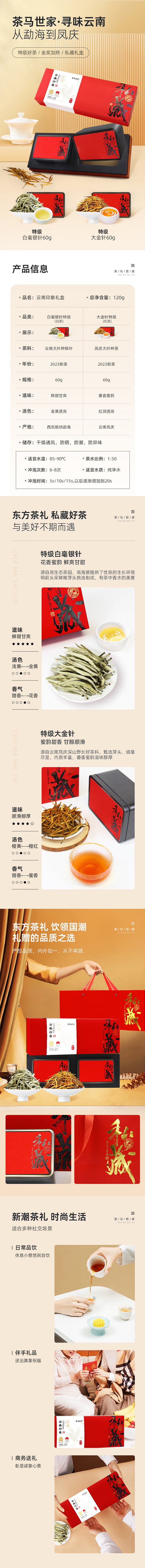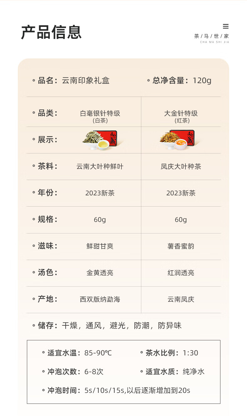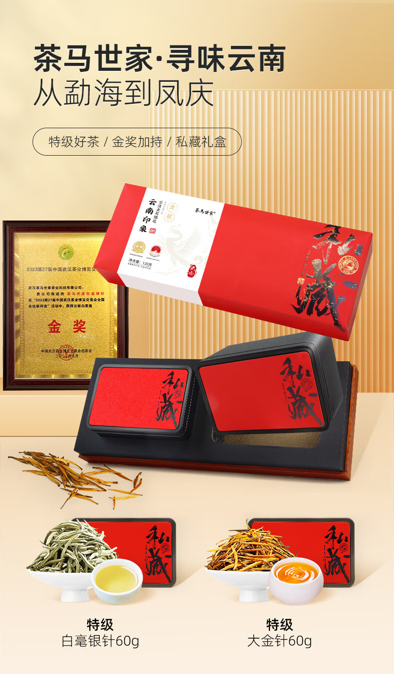 茶马世家 云南印象 白毫银针+大金针 白茶红茶 120g(大金针60g+白毫银针60g) 礼盒装