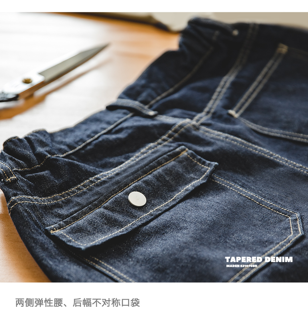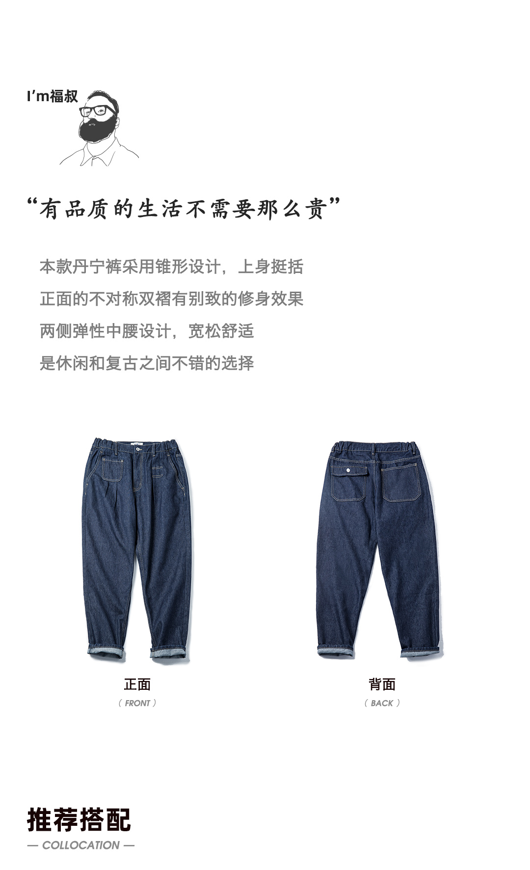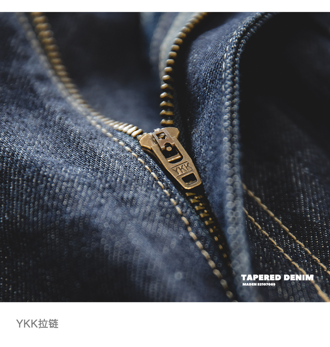 工装优选 日系复古丹宁水洗深色中腰锥形牛仔裤宽松长裤子男秋冬