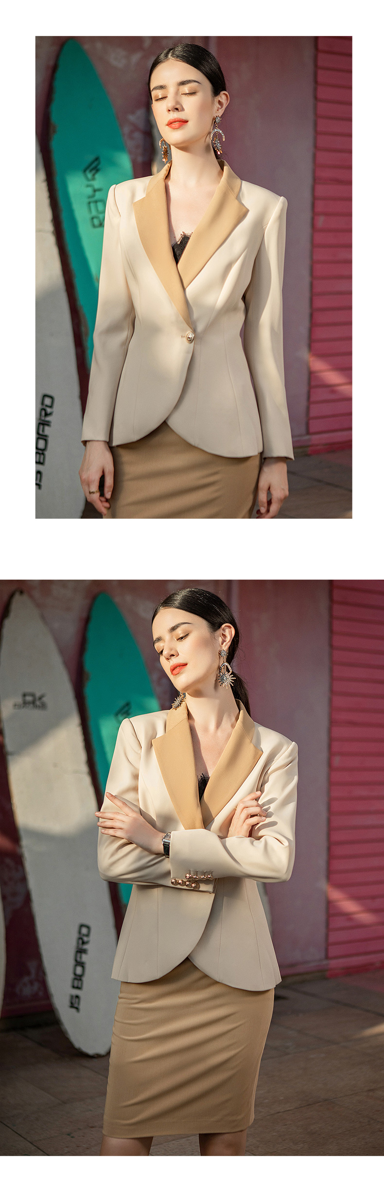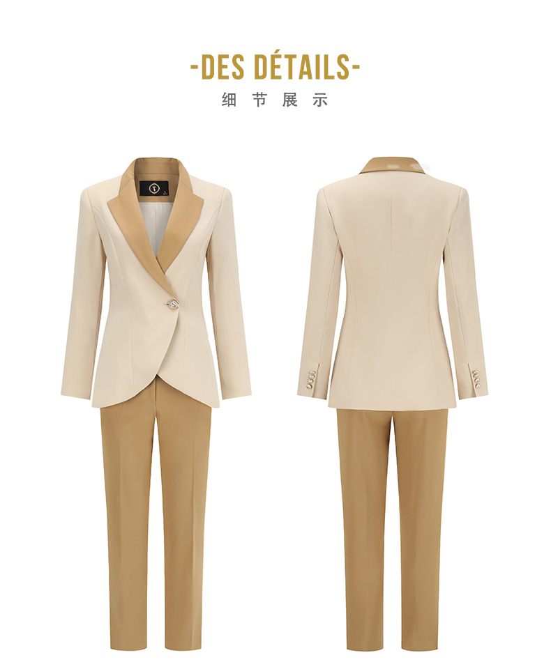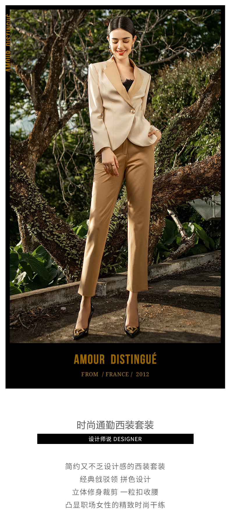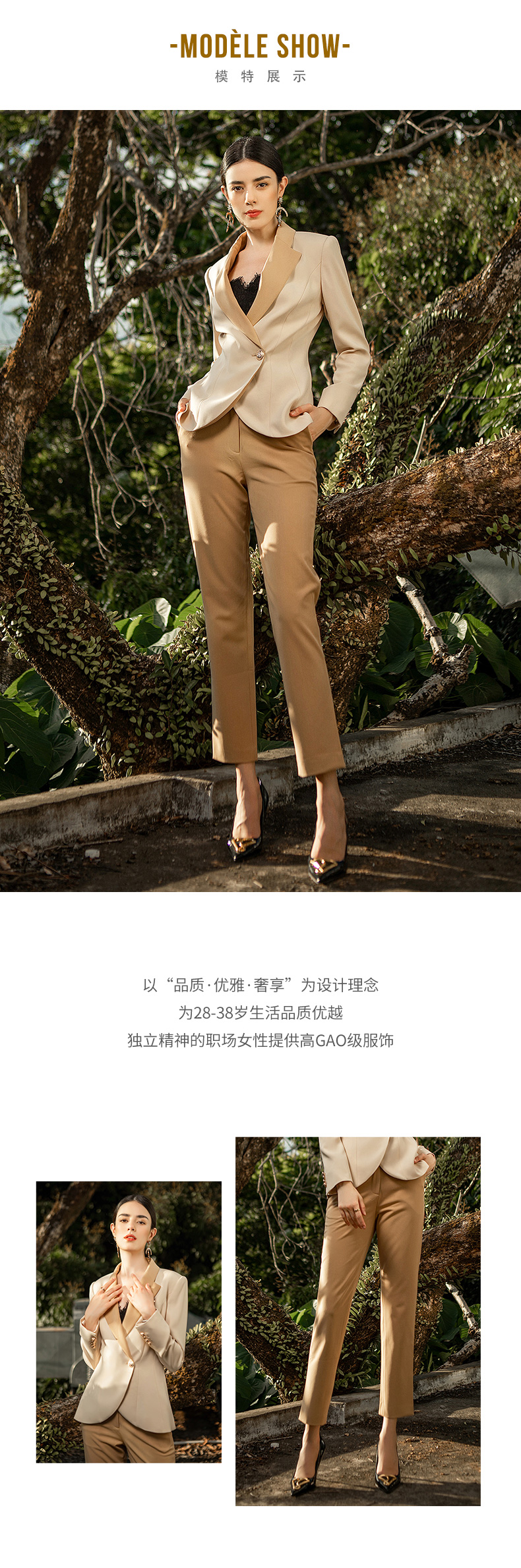AD高端职业套装女秋冬西服职场OL女装卡其色西装正装播音艺考服装