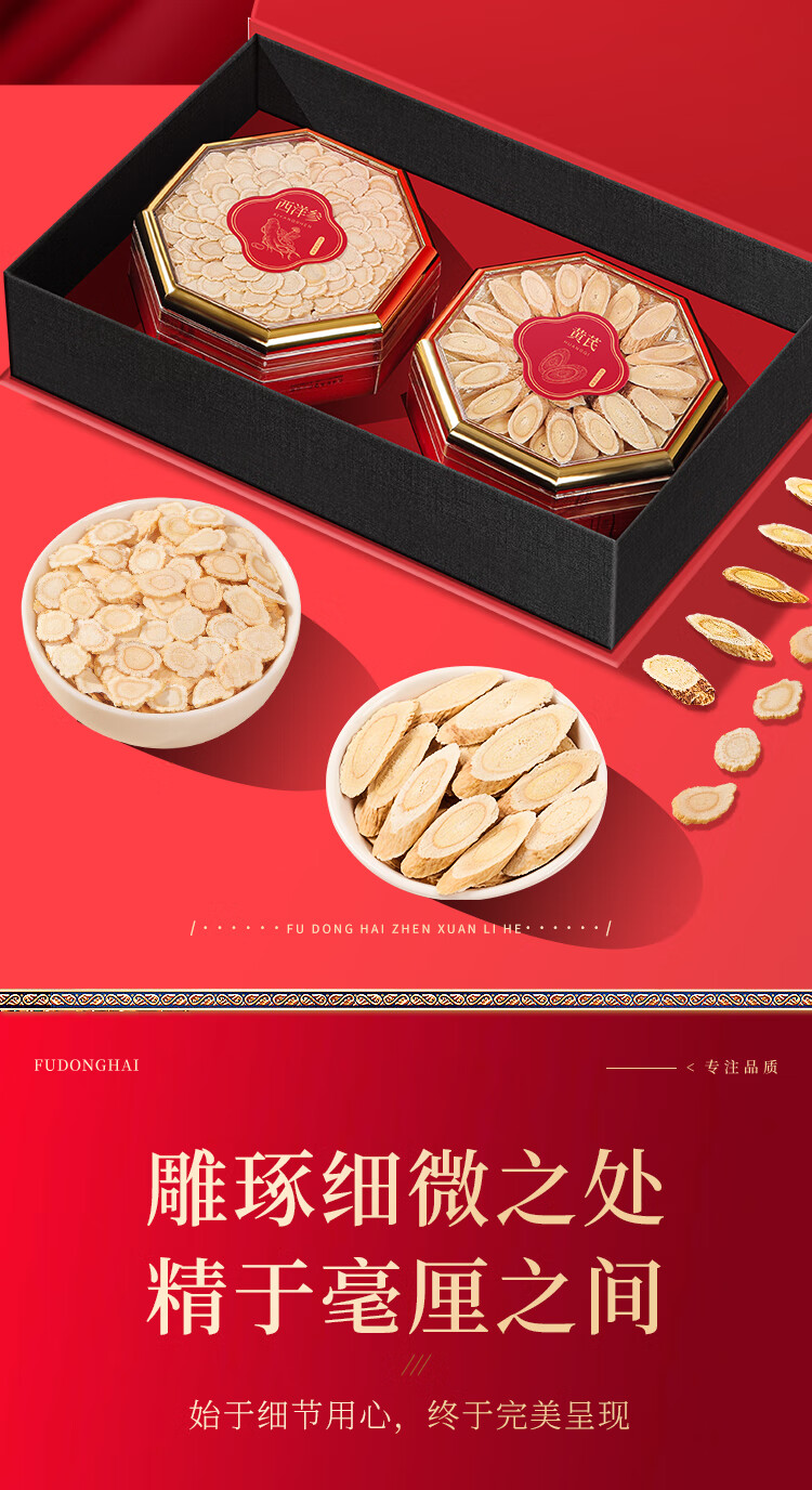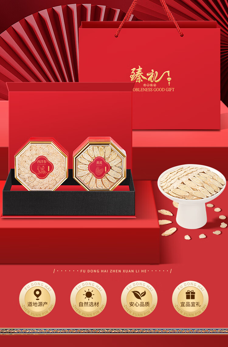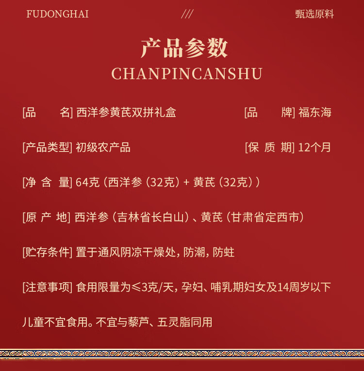 福东海 西洋参黄芪双拼礼盒64克 甘肃黄芪花旗参泡水礼品送长辈父母