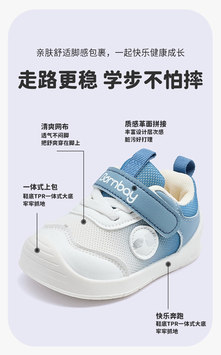贝贝怡宝宝学步鞋2024秋季新款婴儿童鞋男宝休闲鞋洋气女宝机能鞋ZB3DX008