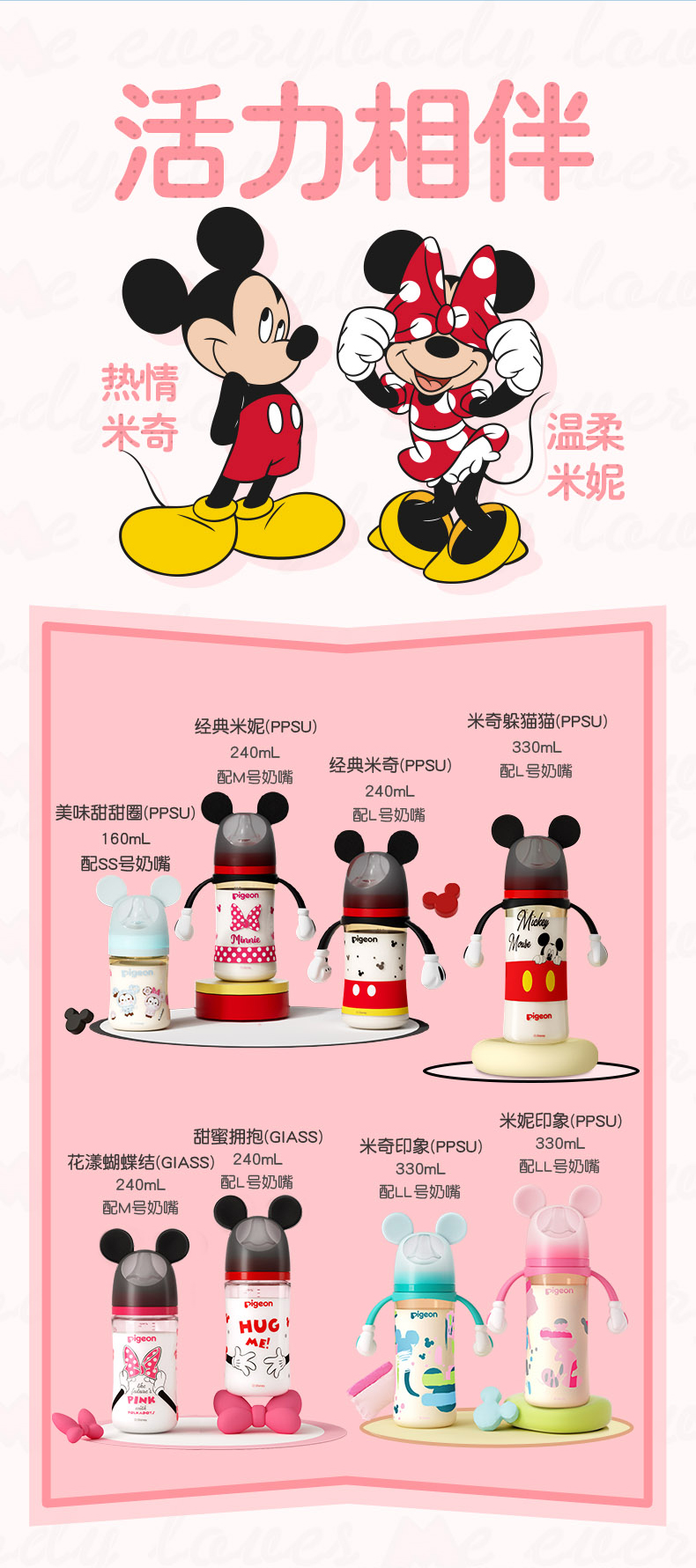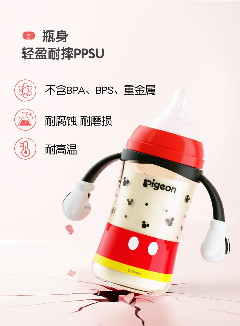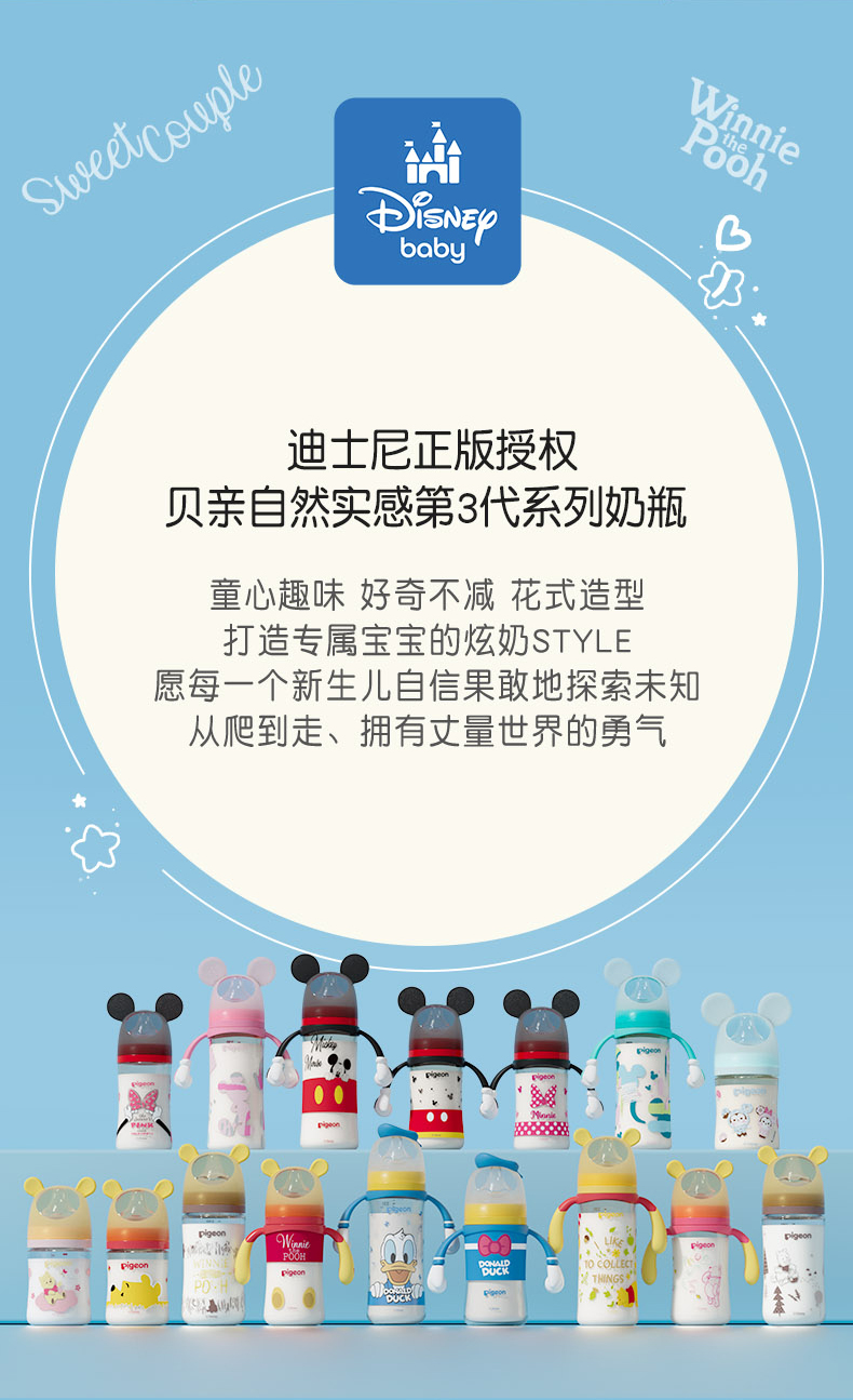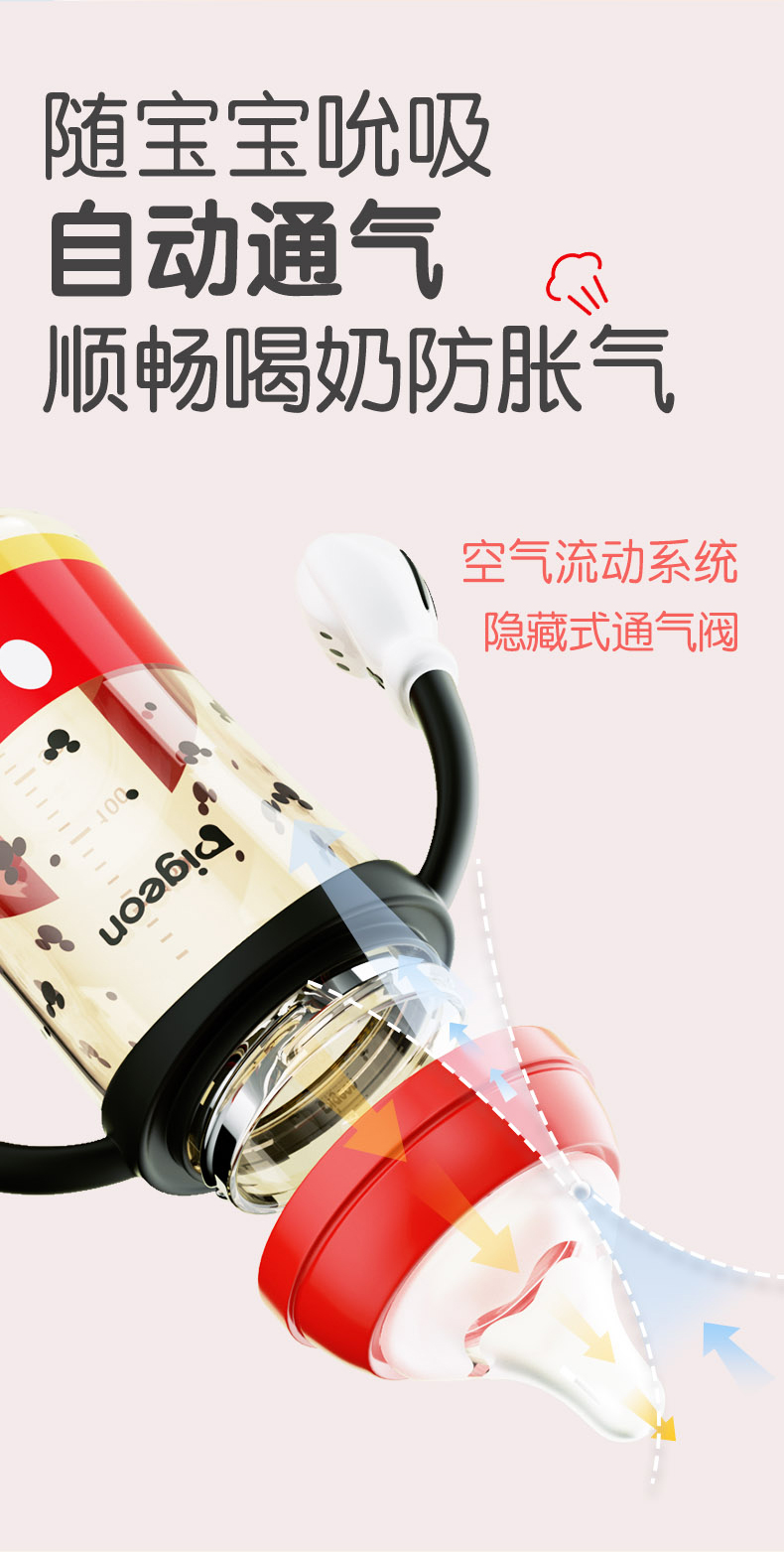 【官方自营】PIGEON/贝亲迪士尼自然实感Ⅲ宽口径防胀气防呛PPSU双把手彩绘奶瓶