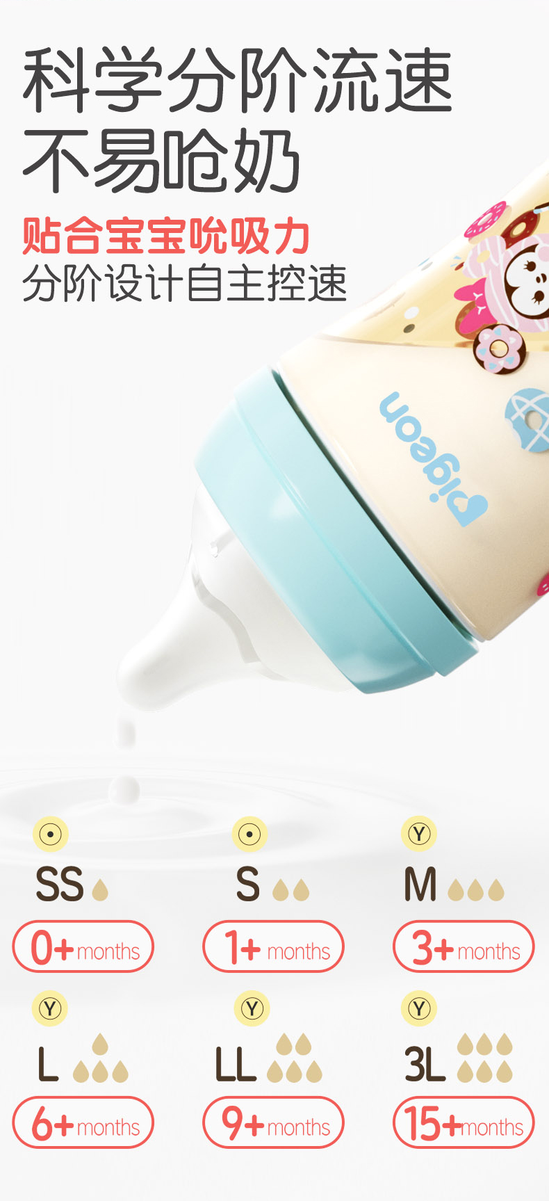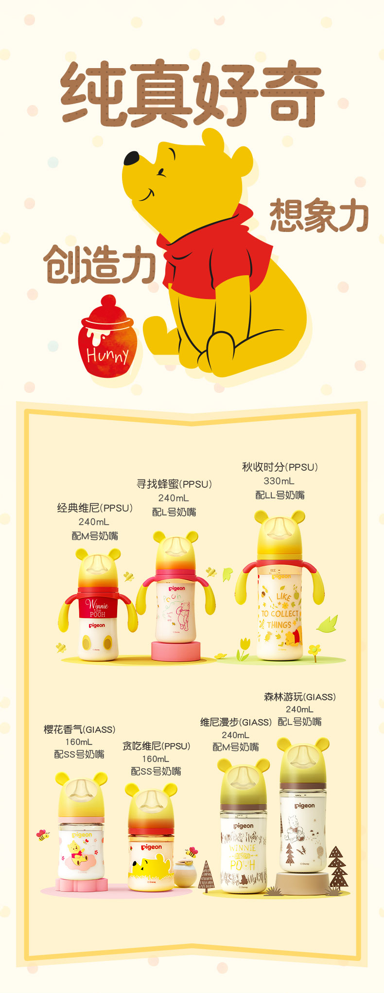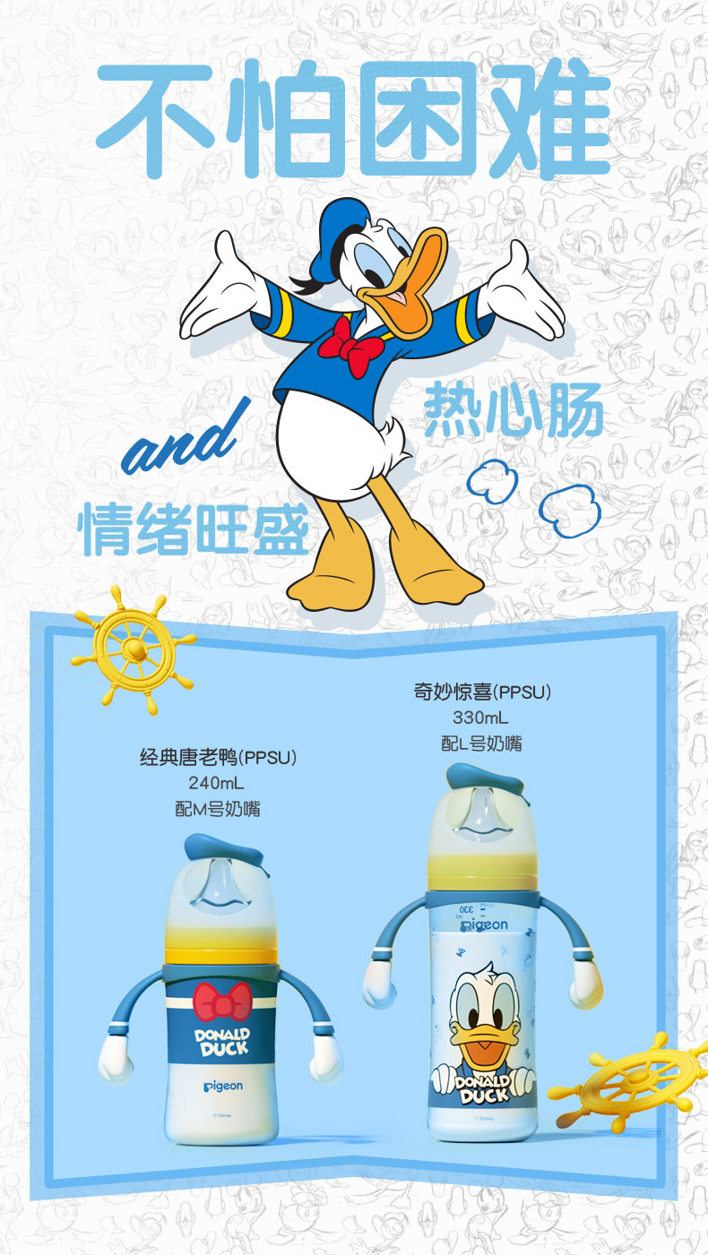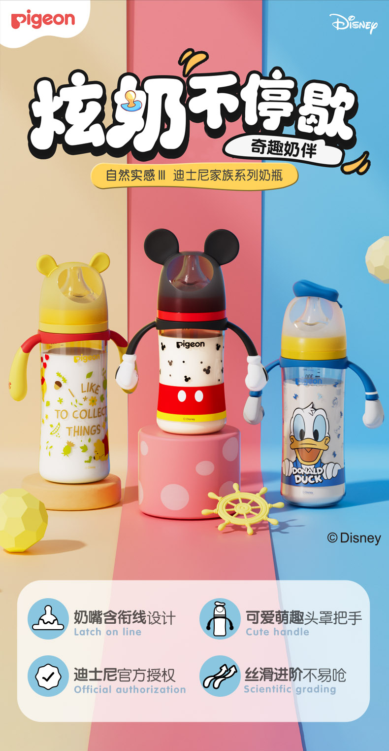 【官方自营】PIGEON/贝亲迪士尼自然实感Ⅲ宽口径防胀气防呛PPSU双把手彩绘奶瓶