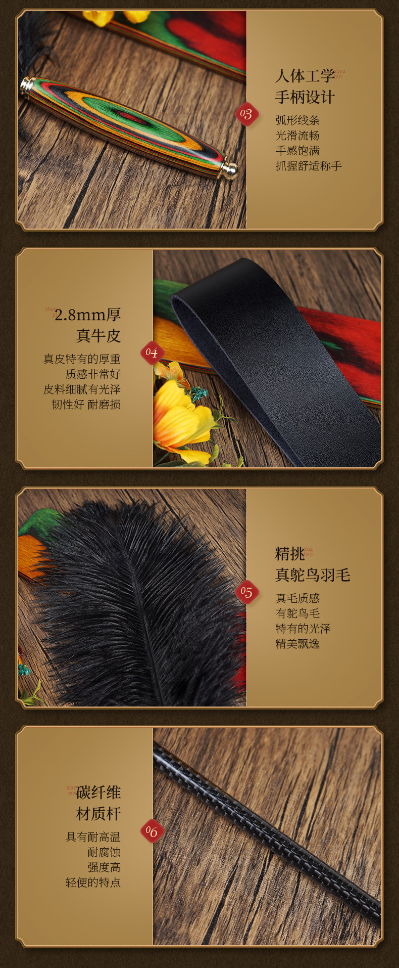 2、细节展示:材质、工艺、做工等;