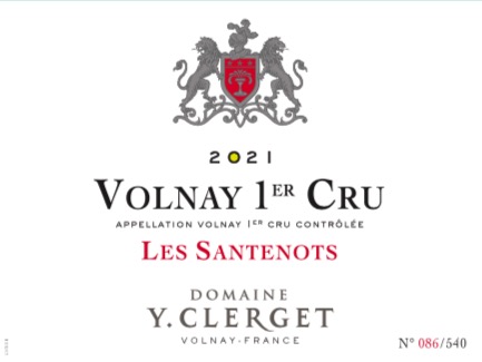「跨境」2021柯莱氏酒庄沃内圣坛诺园红葡萄酒 Y. Clerget Volnay 1er Cru Santenots