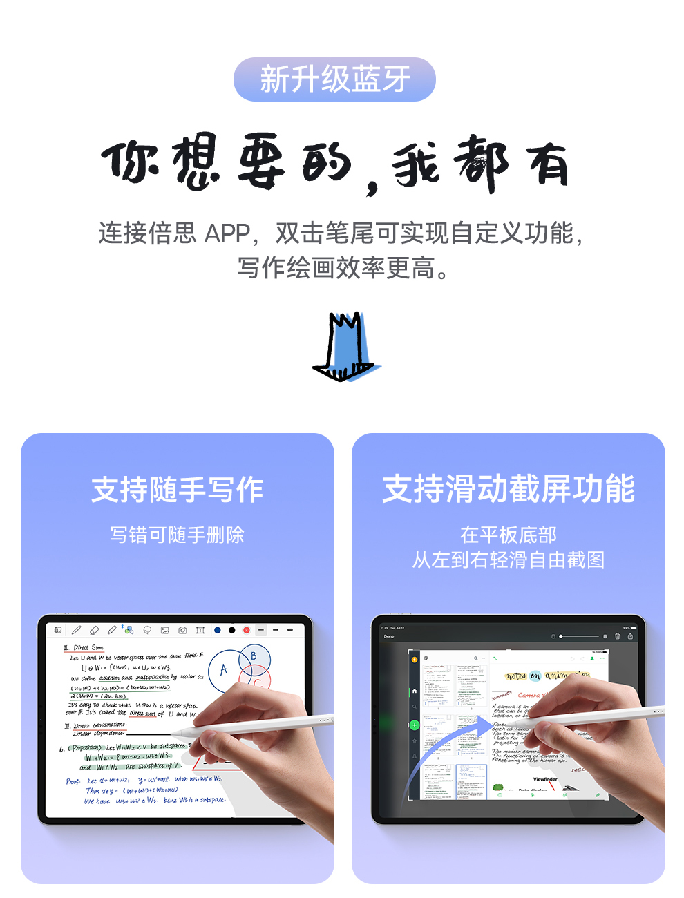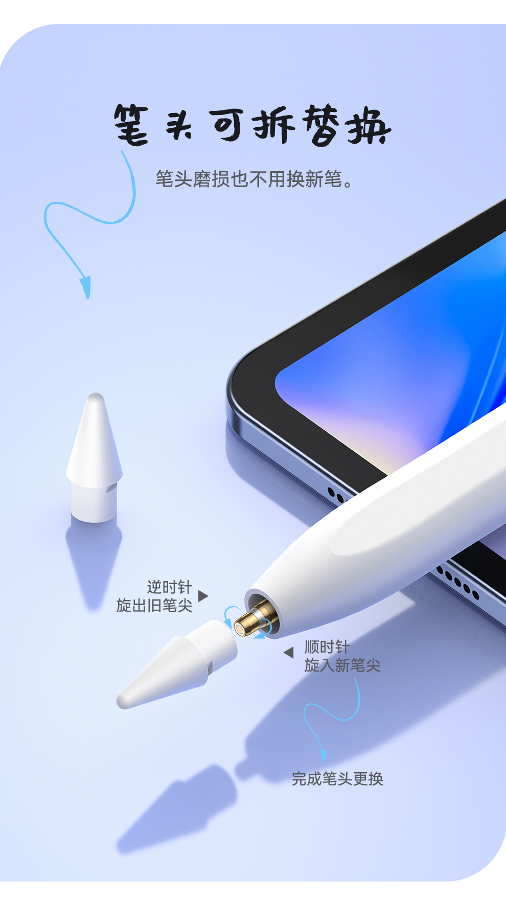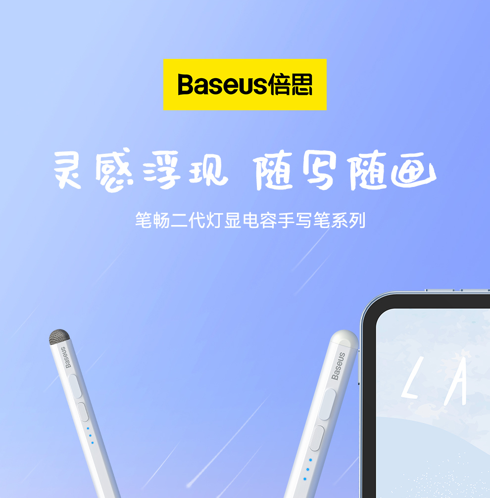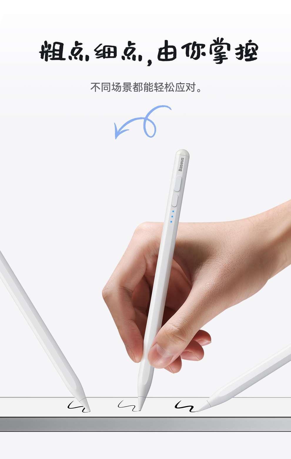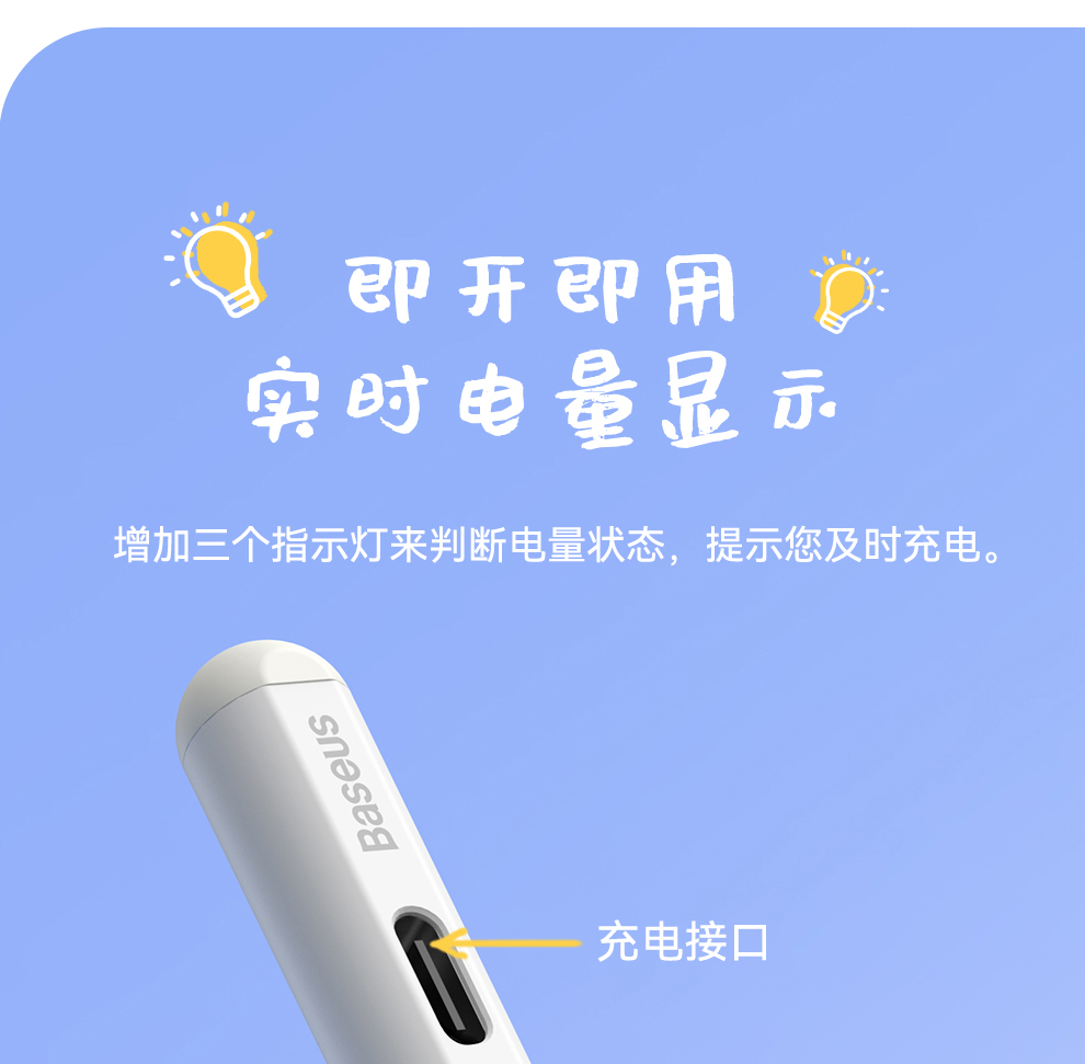 【灯显款】笔畅二代灯显款电容手写笔apple pencil电容笔ipad触控笔防误触 适用ipad/ipad mini/ipad Air/ipad pro