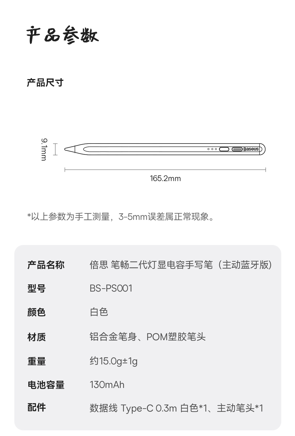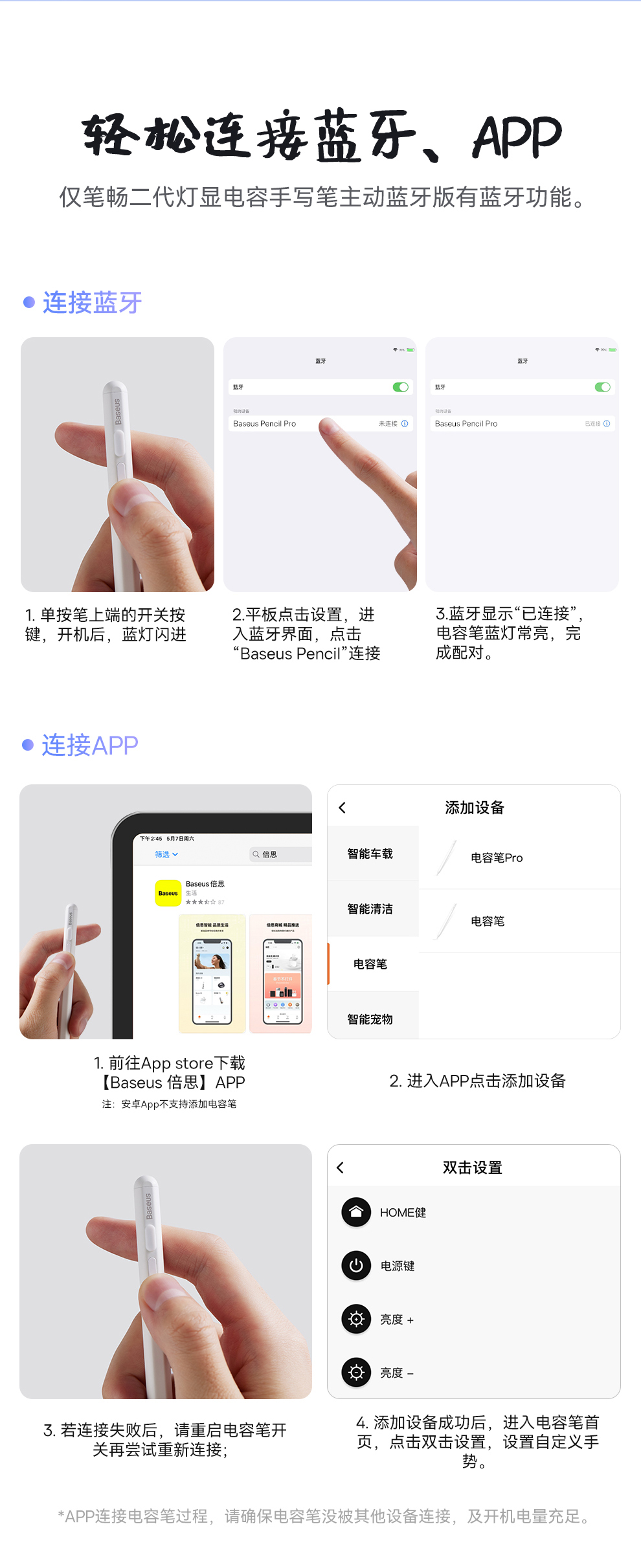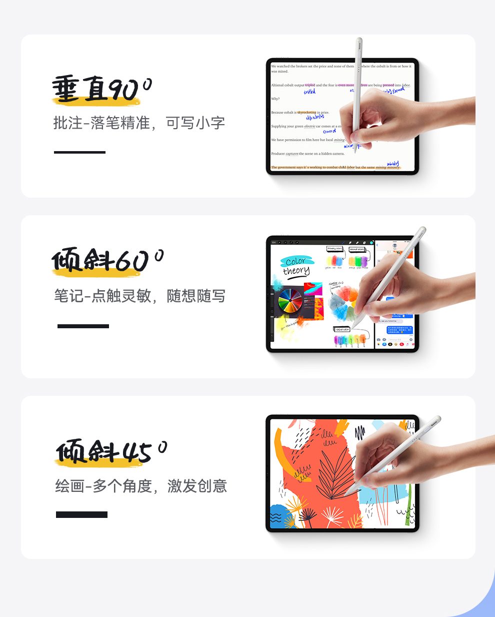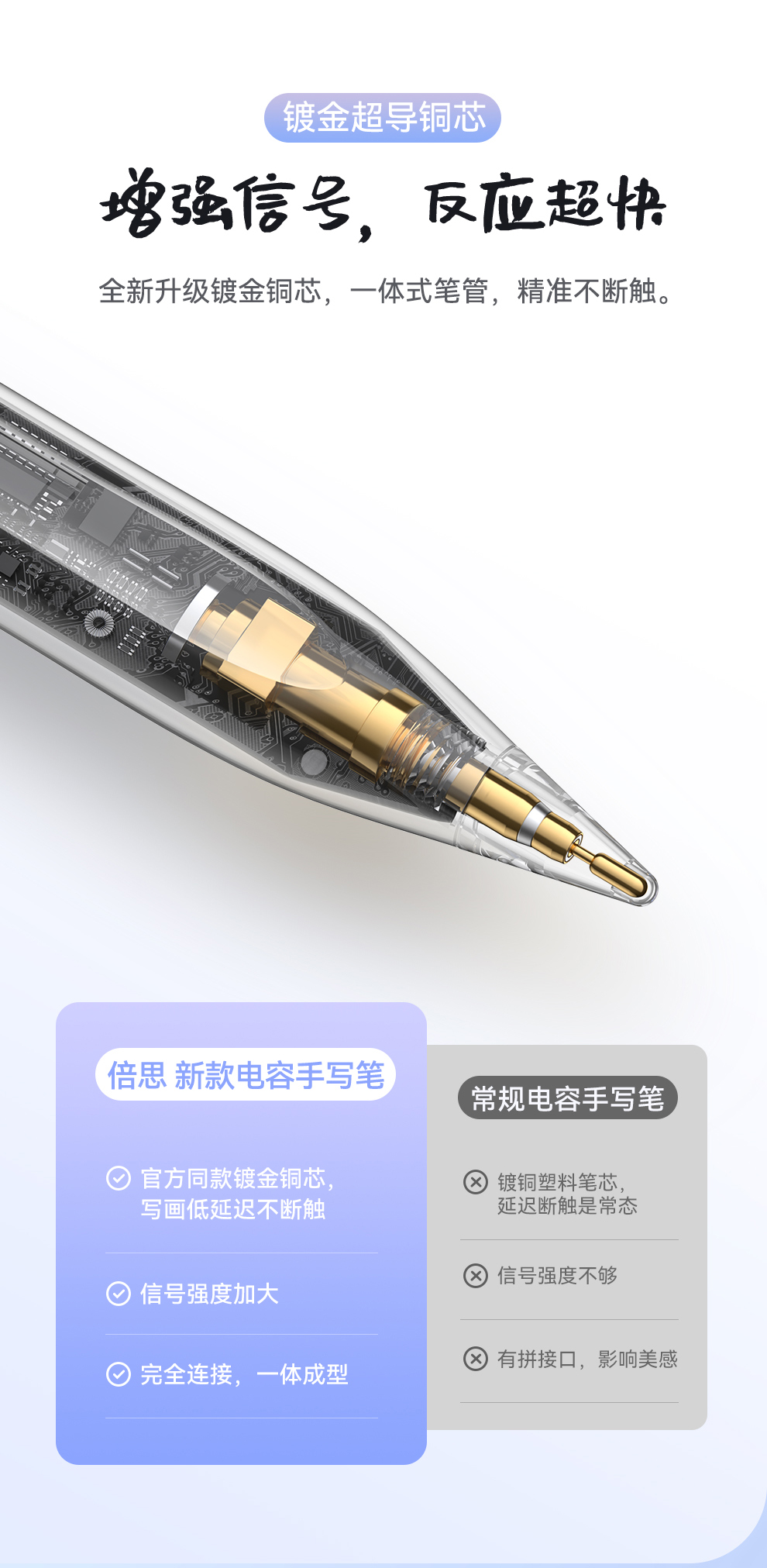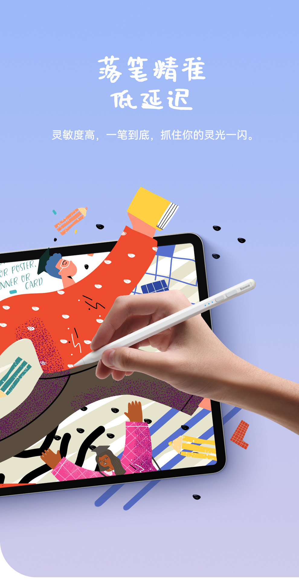 【灯显款】笔畅二代灯显款电容手写笔apple pencil电容笔ipad触控笔防误触 适用ipad/ipad mini/ipad Air/ipad pro