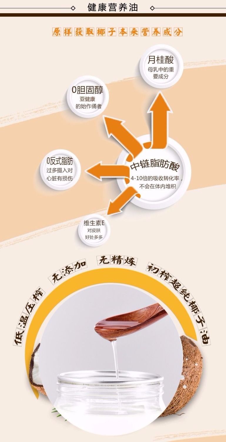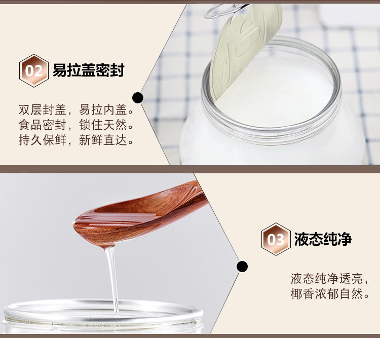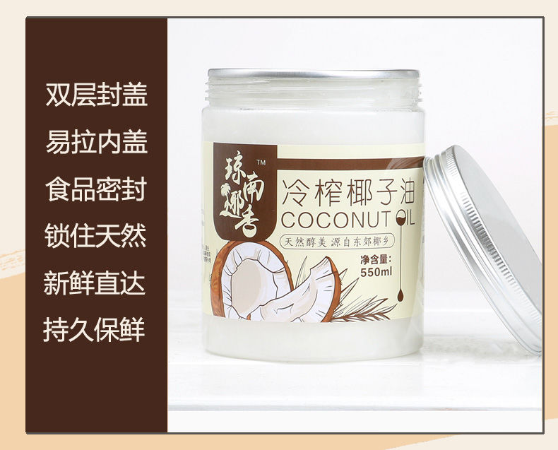 椰子油海南原产初榨550ml/1000ml纯椰油食用护发护肤卸妆生酮50ml