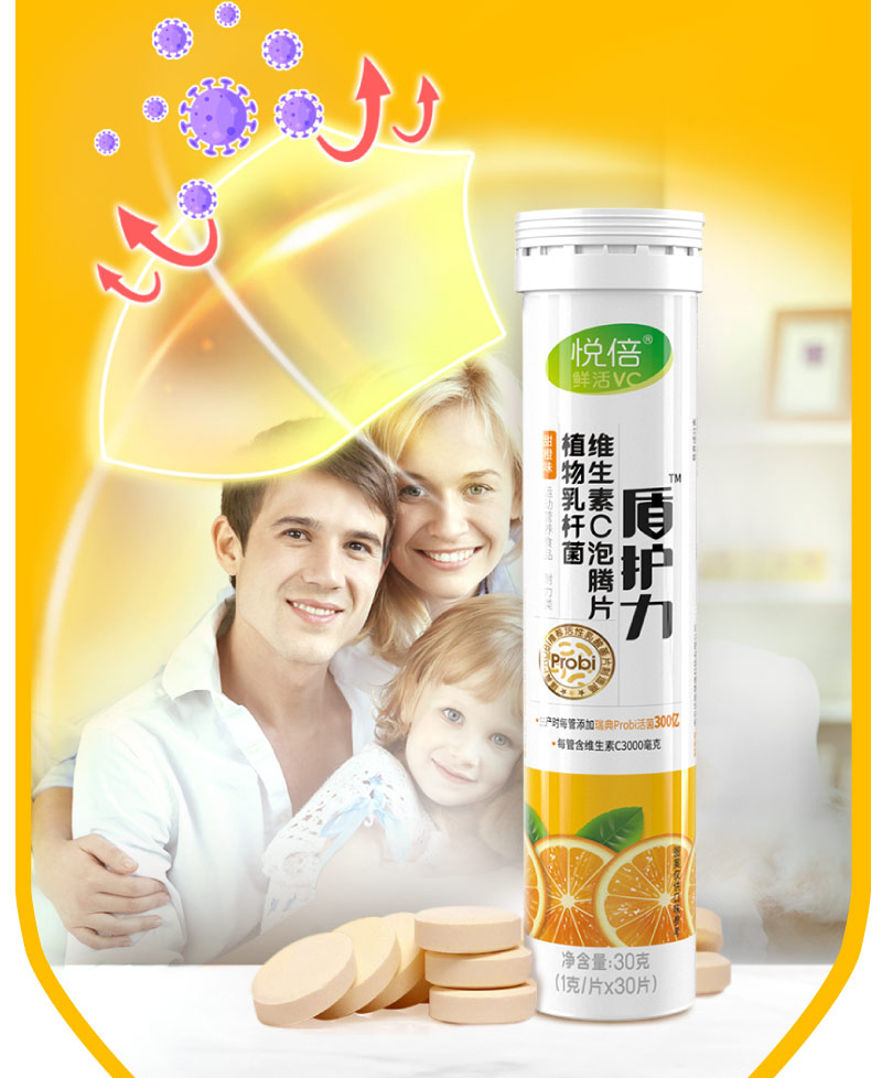 悦倍鲜活VC物乳杆菌维生素c泡腾片3支组合装 口含10亿活性乳酸菌片