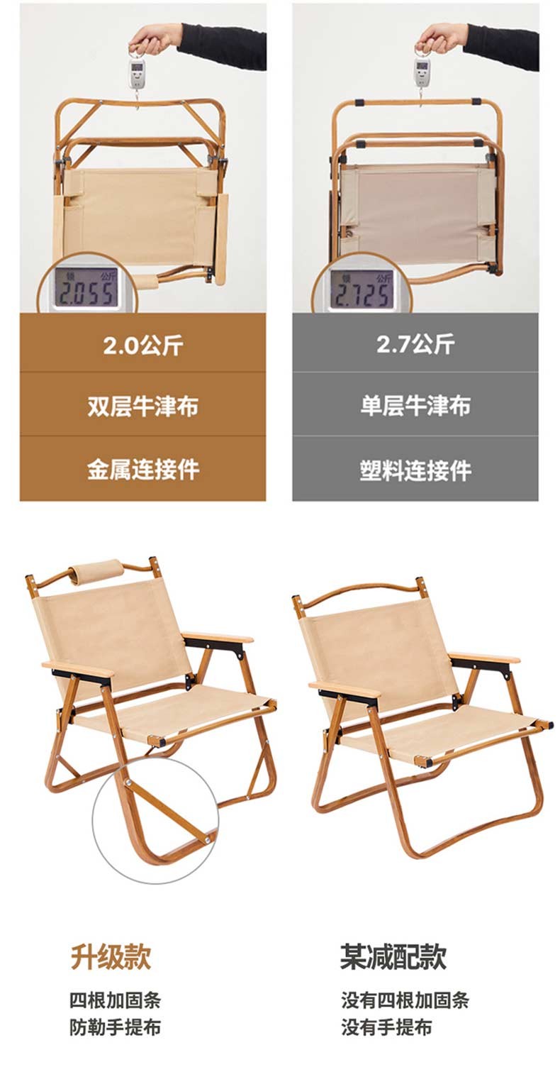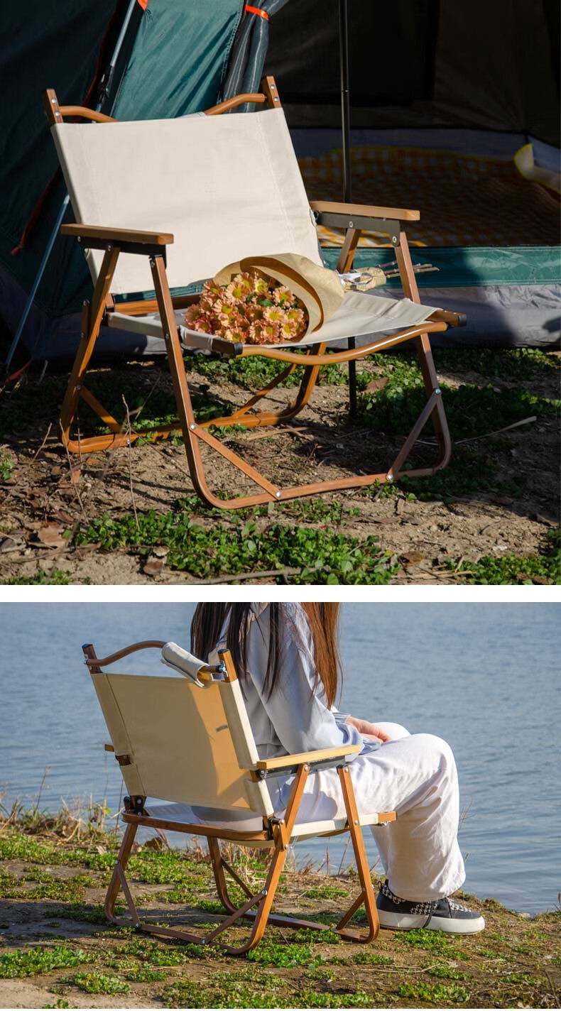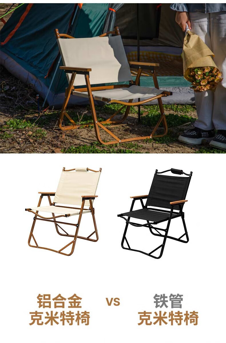 徽羚羊 木纹克米特 精致露营折叠便携露营椅 单人小号(钢材椅架)米白色