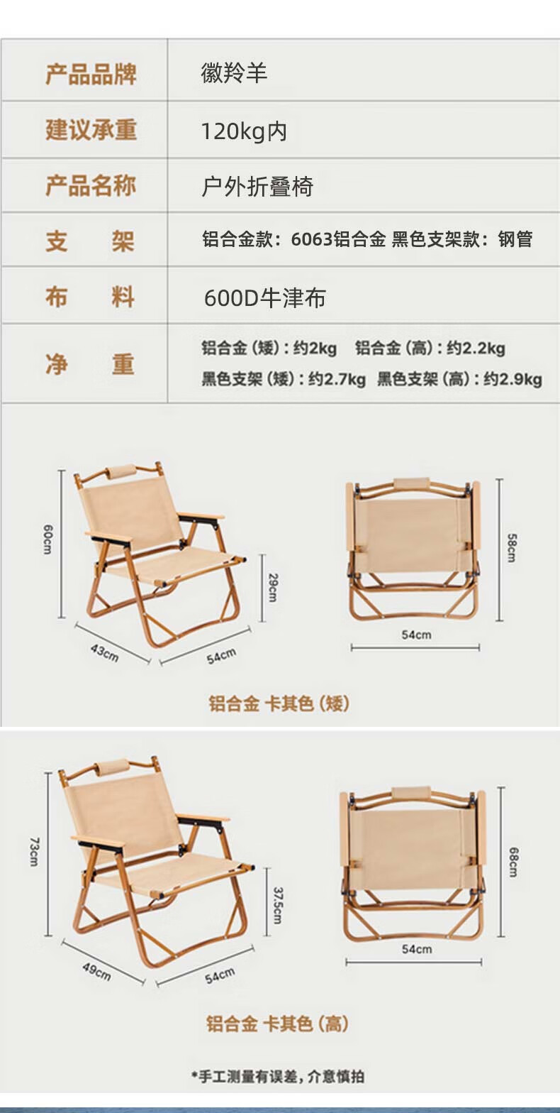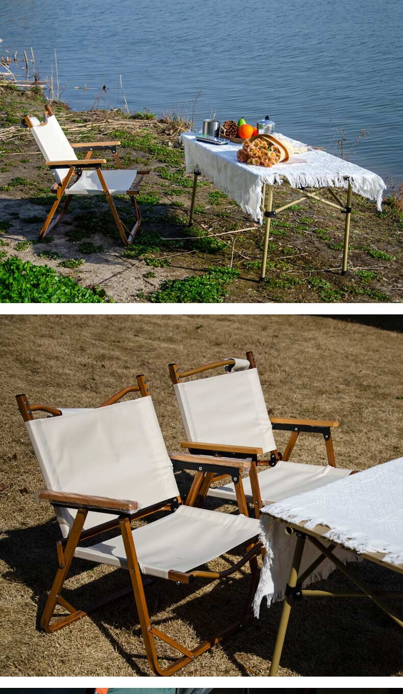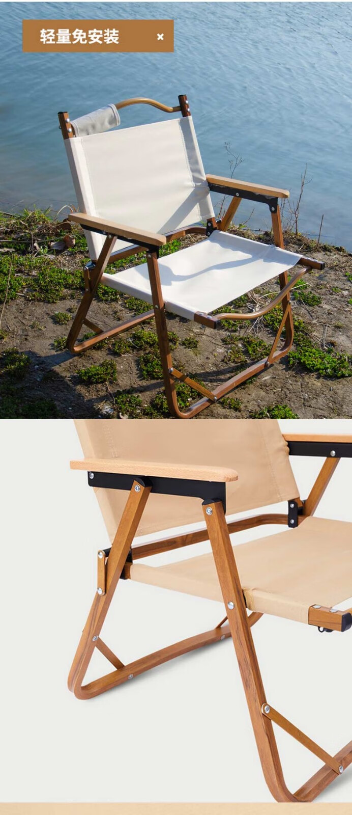 徽羚羊 木纹克米特 精致露营折叠便携露营椅 单人小号(钢材椅架)米白色