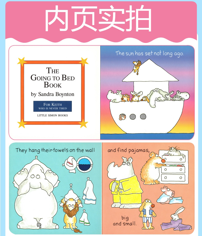 The Going to Bed Book《睡前故事书》是儿童畅销作家桑德拉·博因顿的作品,本书为英文原版,适合0-5岁的宝宝们英语启蒙。