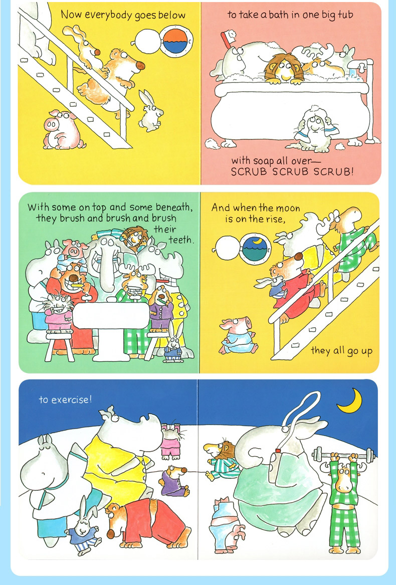 This classic bedtime story is just right for winding down the day as a joyful, silly group of animals scrub scrub scrub in the tub, brush and brush and brush their teeth, and finally rock and rock and rock to sleep.