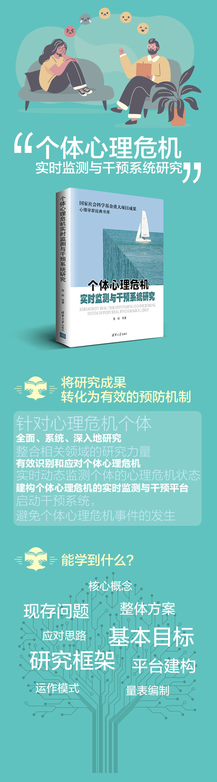 《个体心理危机实时监测与干预系统研究》一书对心理危机个体进行“两重监测,三级预警”的动态性实时监测与预警,有效开展个体心理危机监测与干预工作。