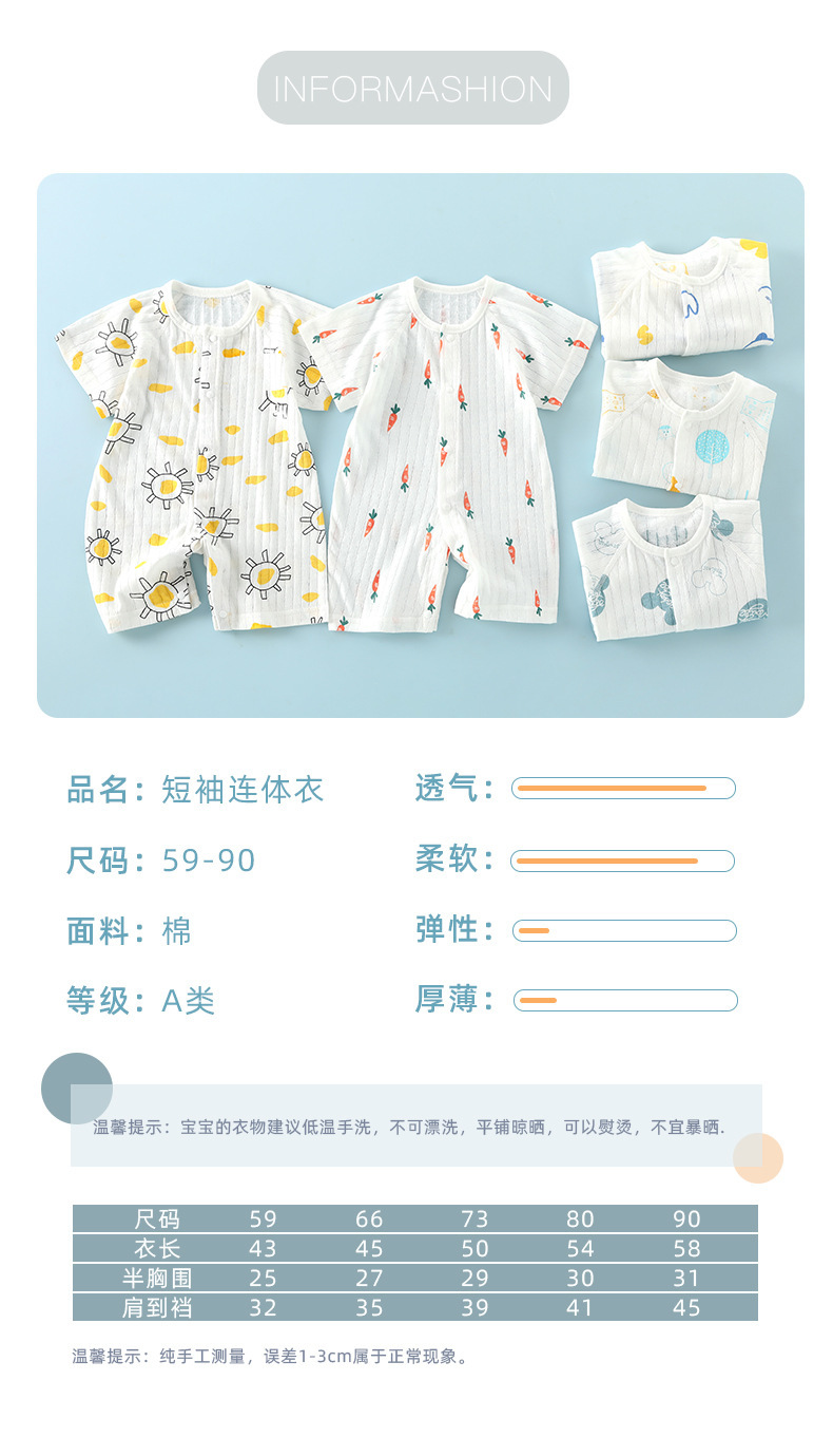 【宝宝短袖连体衣】婴儿衣服夏季薄款女短袖新生儿男宝宝睡衣A类纯棉哈衣短袖连体衣