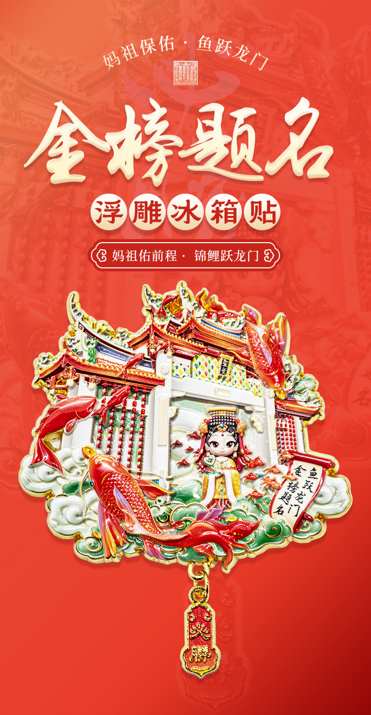 湄洲妈金榜题名鱼跃龙门浮雕冰箱贴
