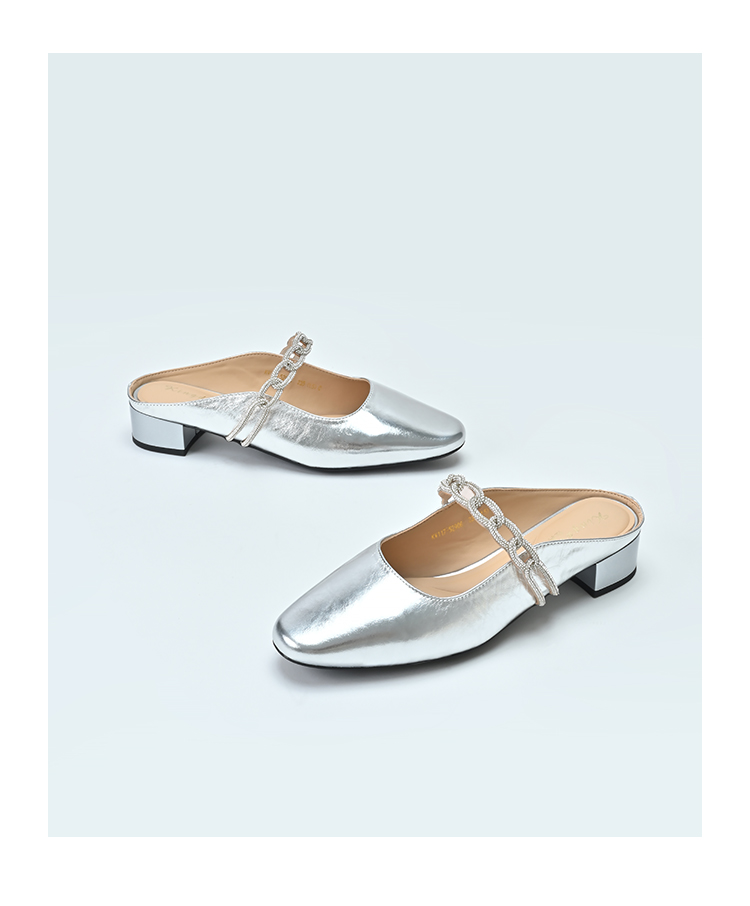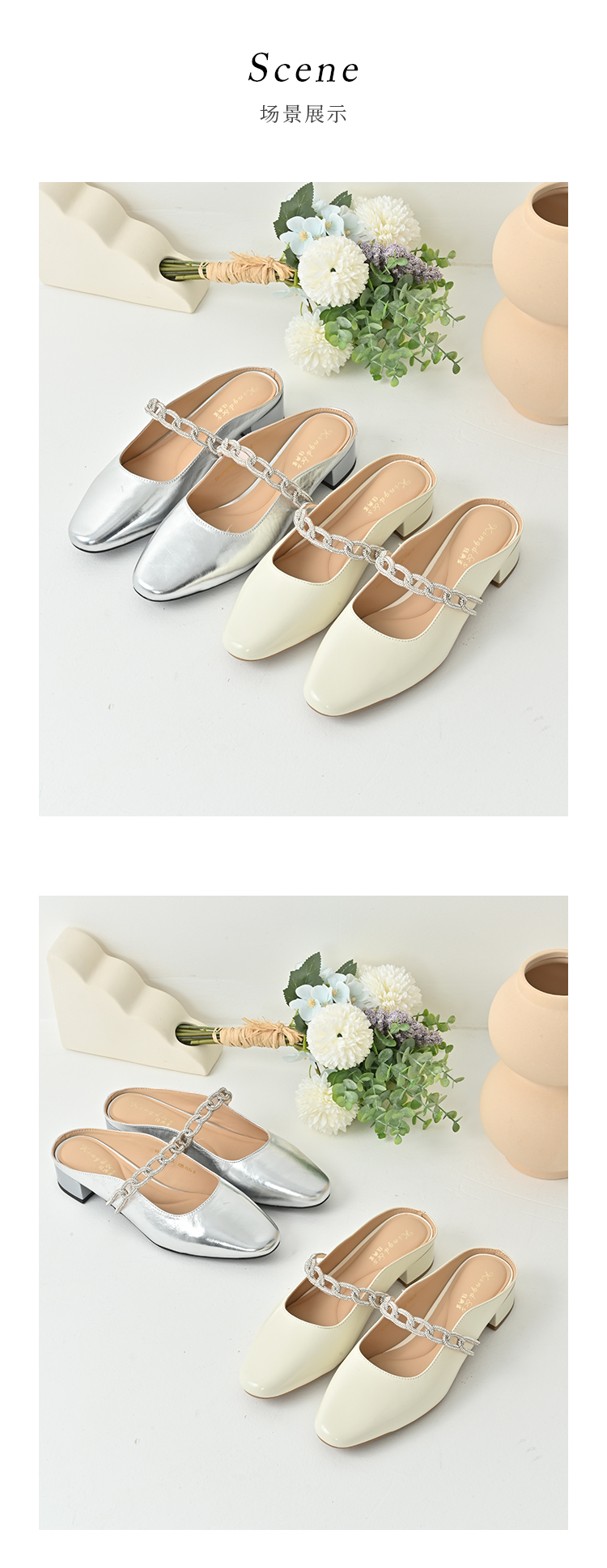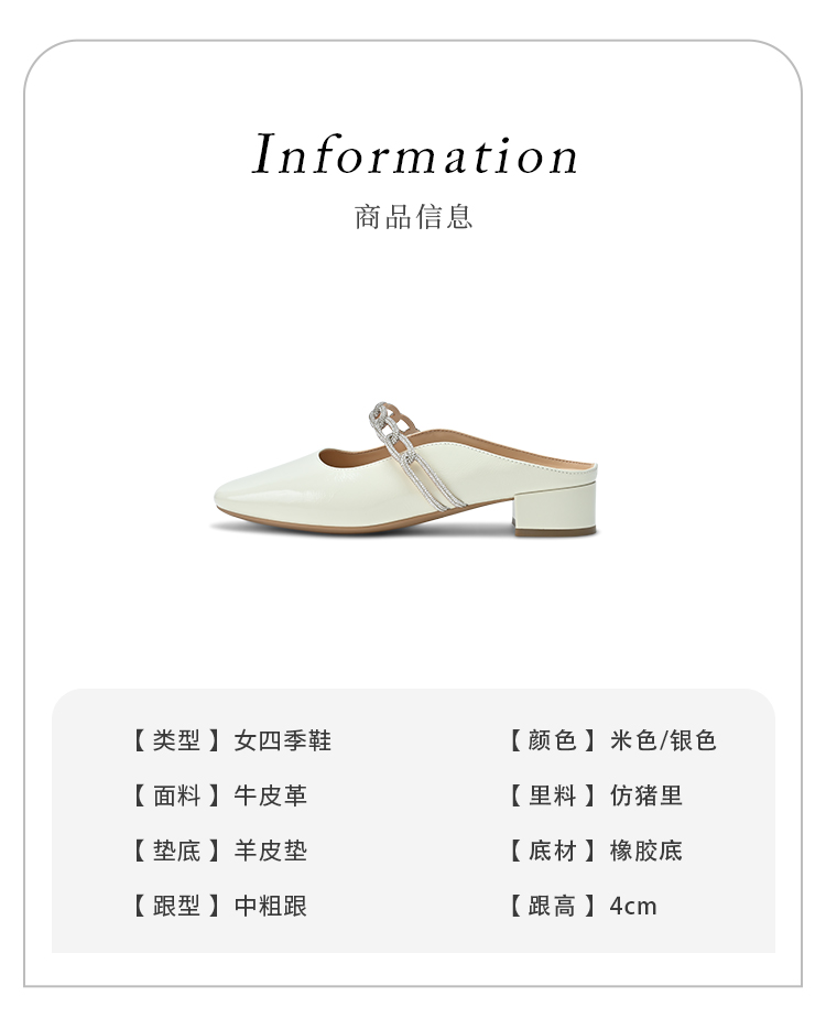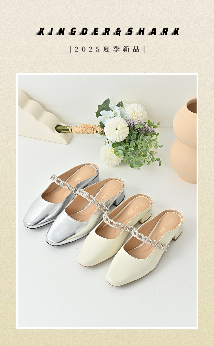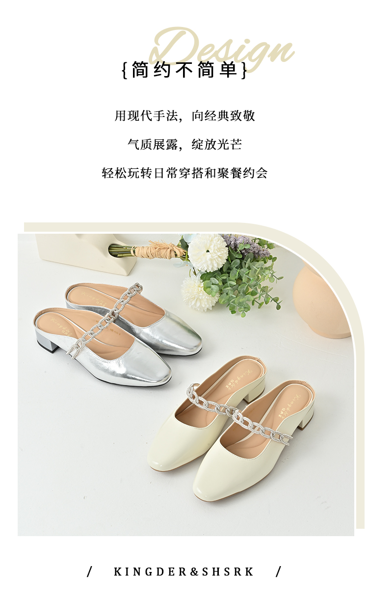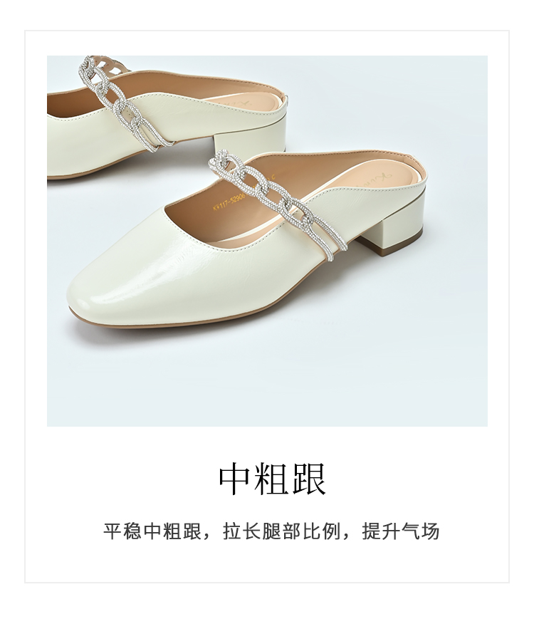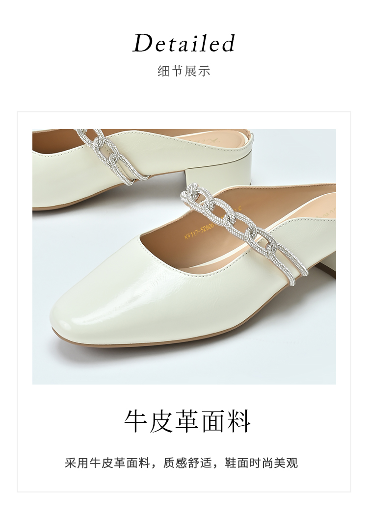 经典鲨2025夏季新品牛皮革法式复古方头一脚蹬气质凉拖鞋女KW117-529061