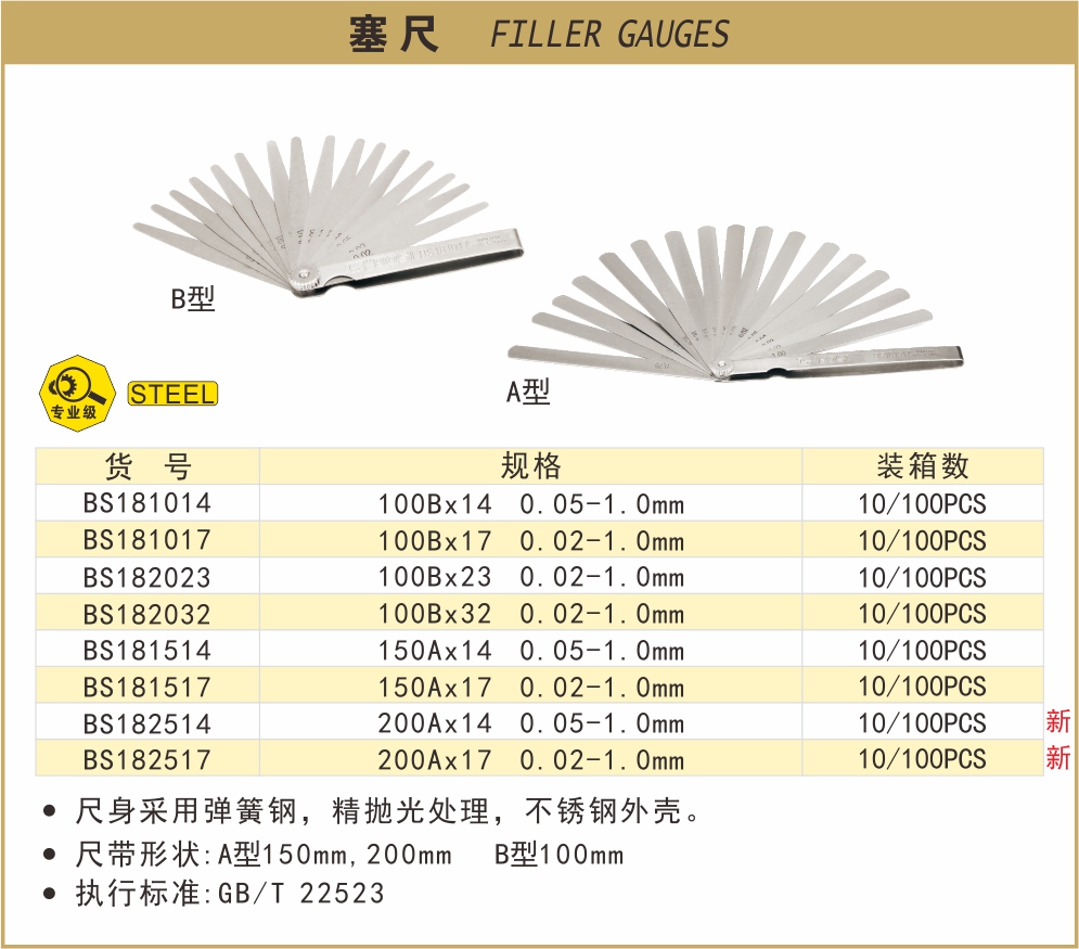波斯塞尺 BS181014/BS181017/BS182023/BS182032/BS181514/BS181517/BS182514/BS182517