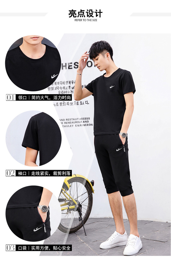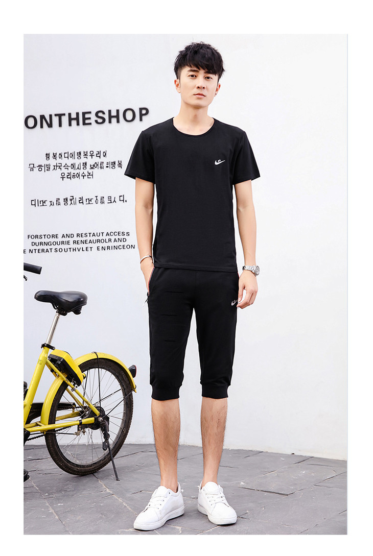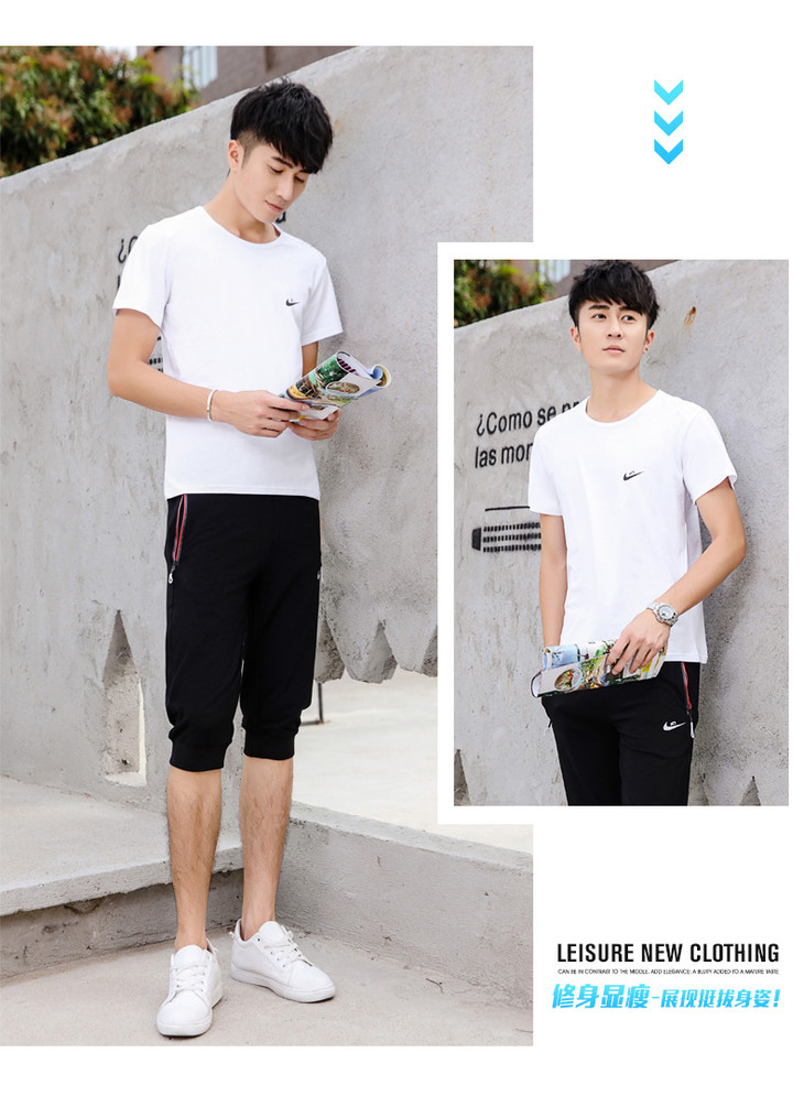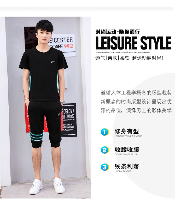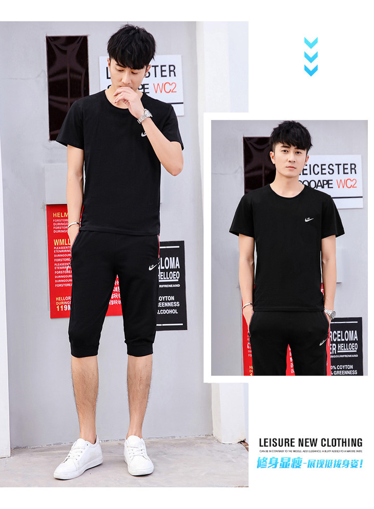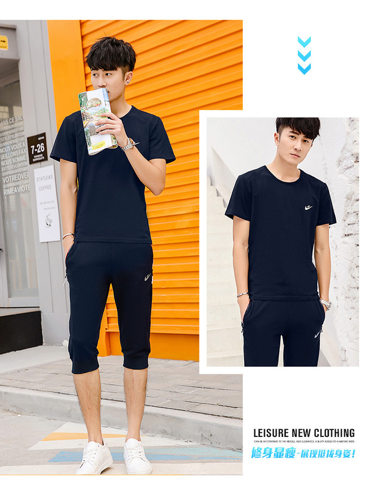 【服饰鞋包】夏季运动套装两件套男 纯棉短袖T恤七分裤子休闲时尚