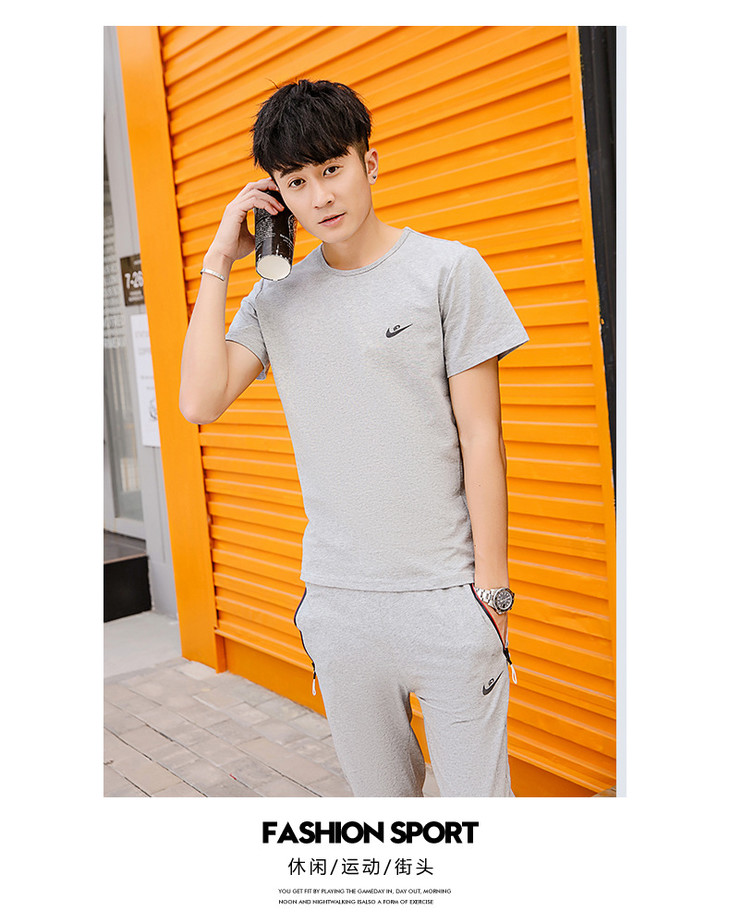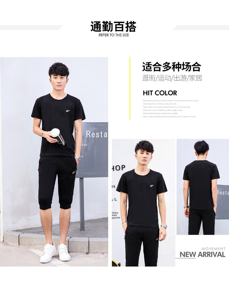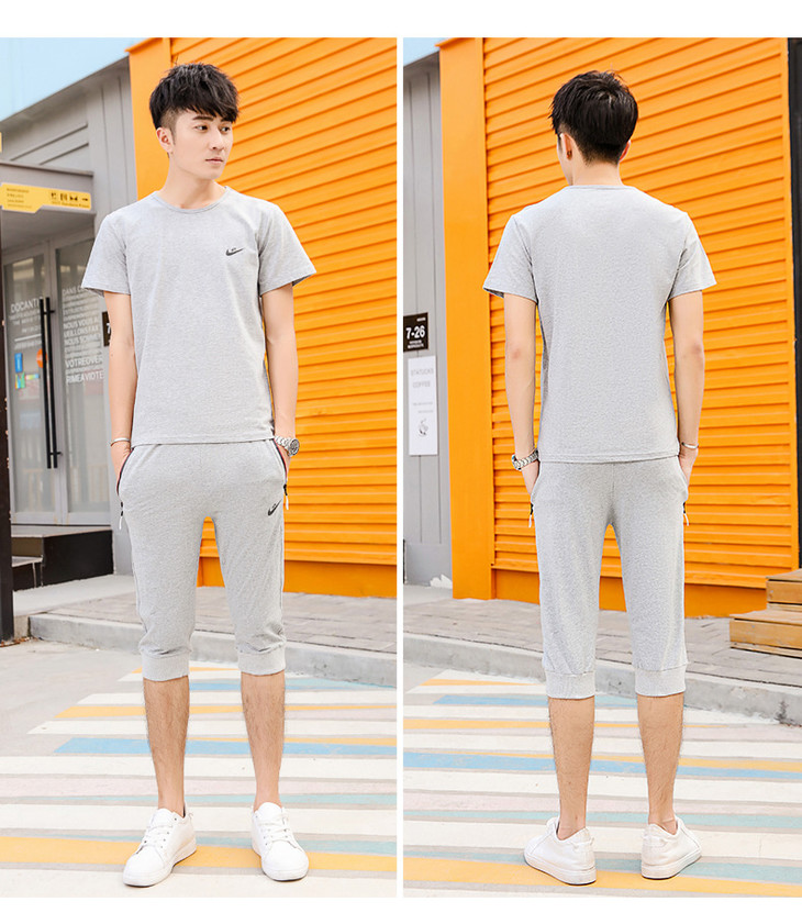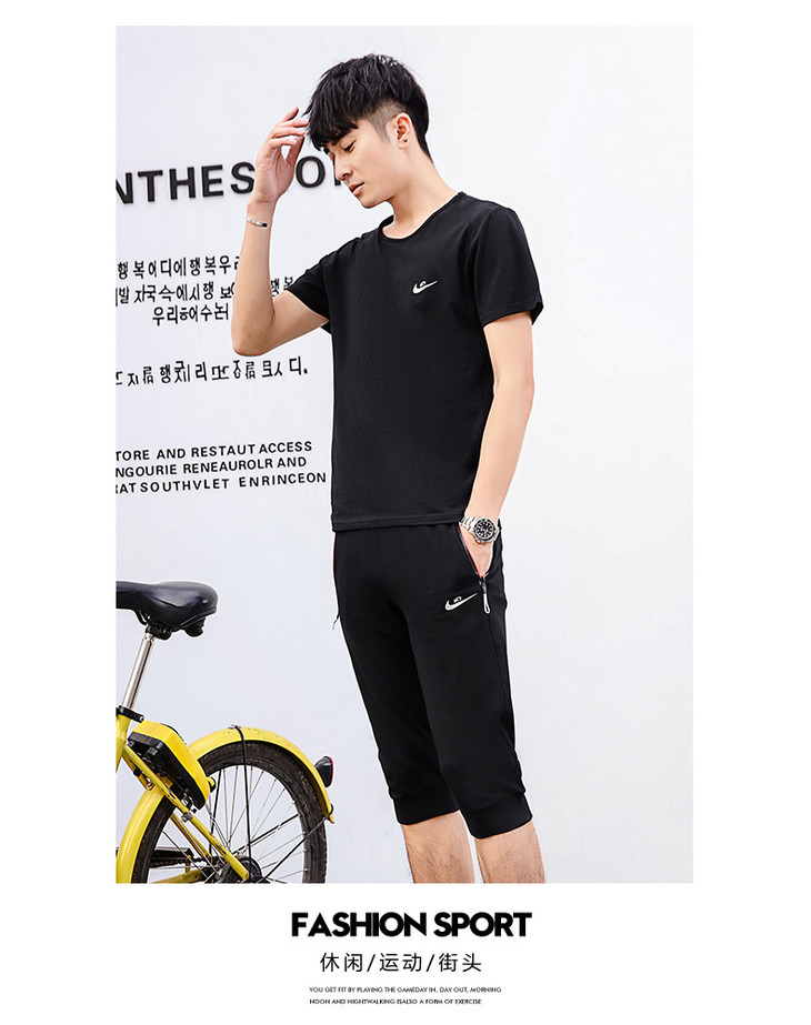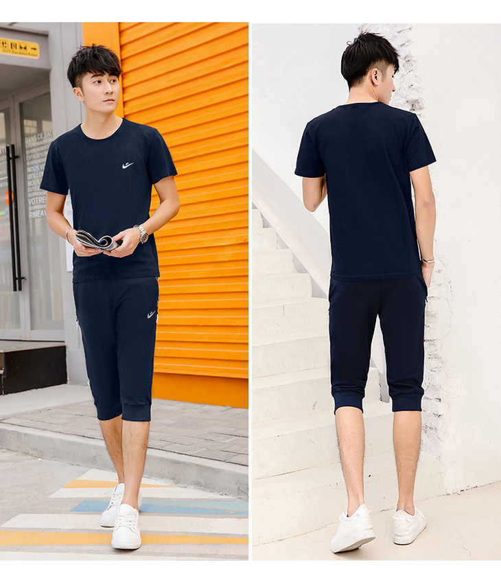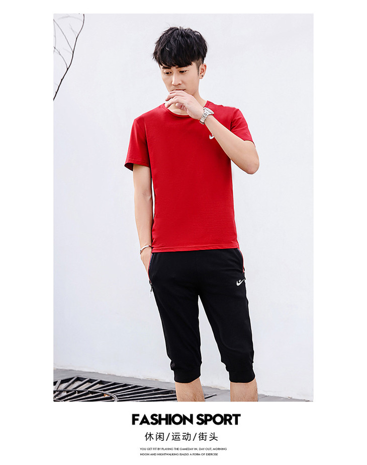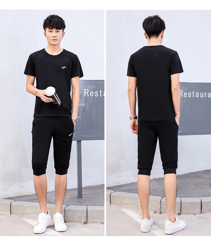 【服饰鞋包】夏季运动套装两件套男 纯棉短袖T恤七分裤子休闲时尚