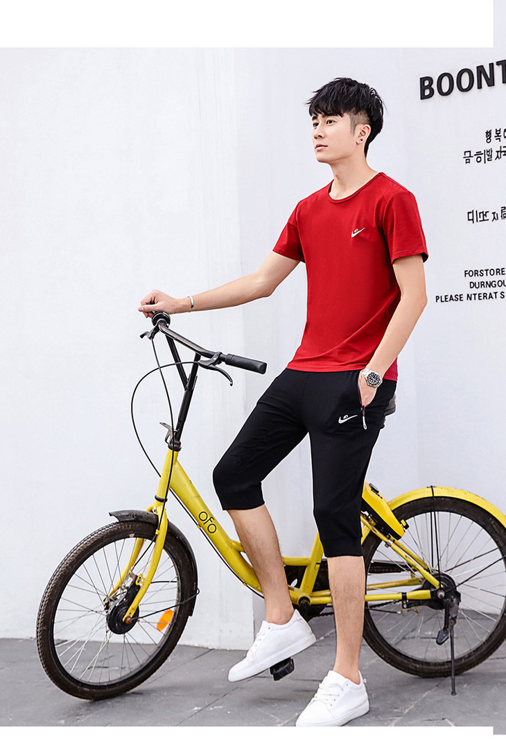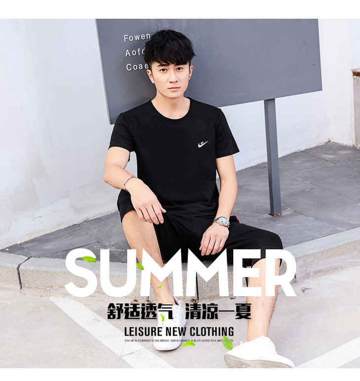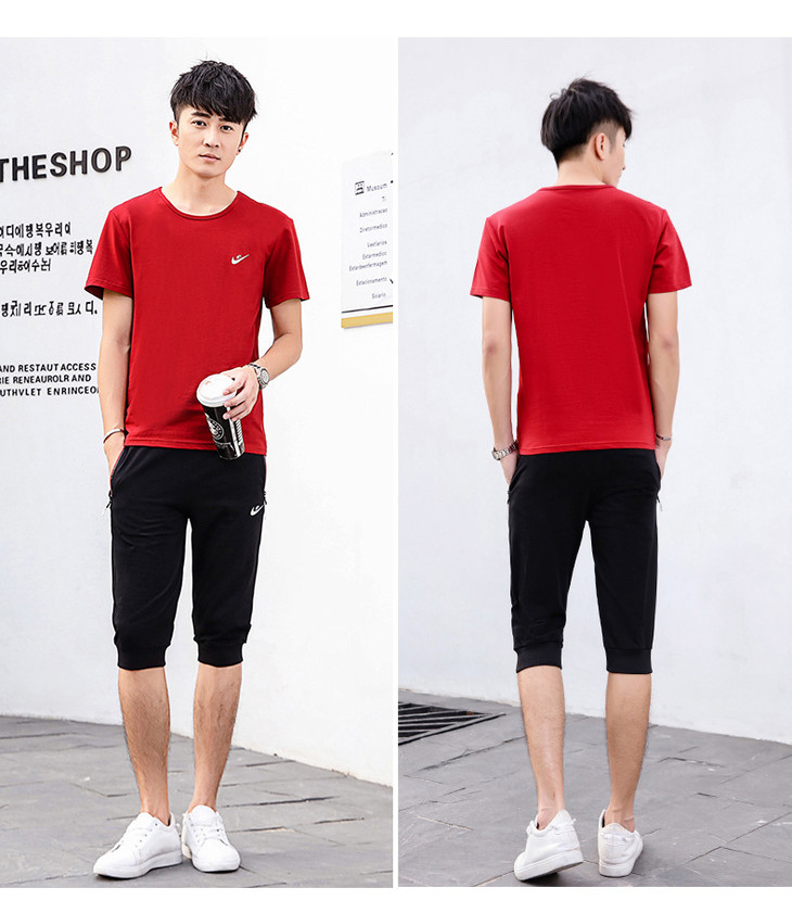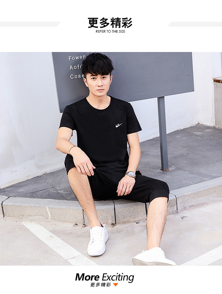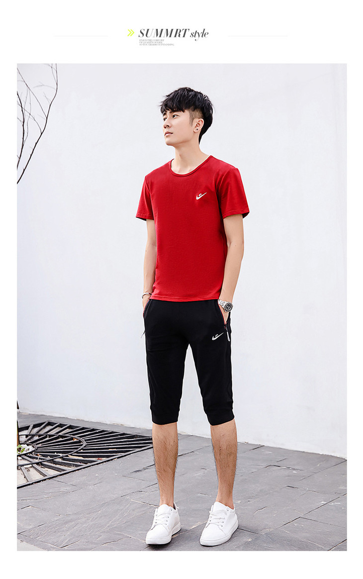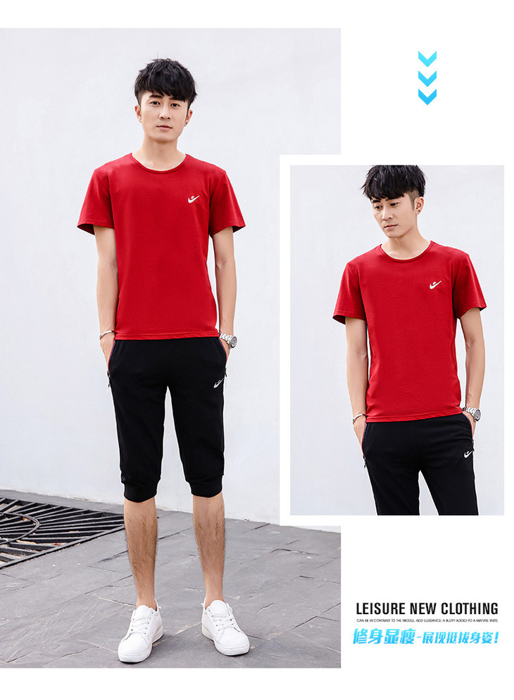 【服饰鞋包】夏季运动套装两件套男 纯棉短袖T恤七分裤子休闲时尚