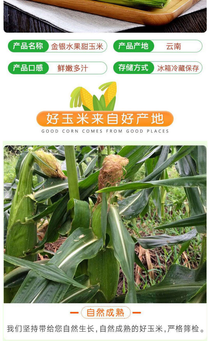 【产品规格】云南水果玉米5斤(6-8根);云南水果玉米8斤(9~13根)