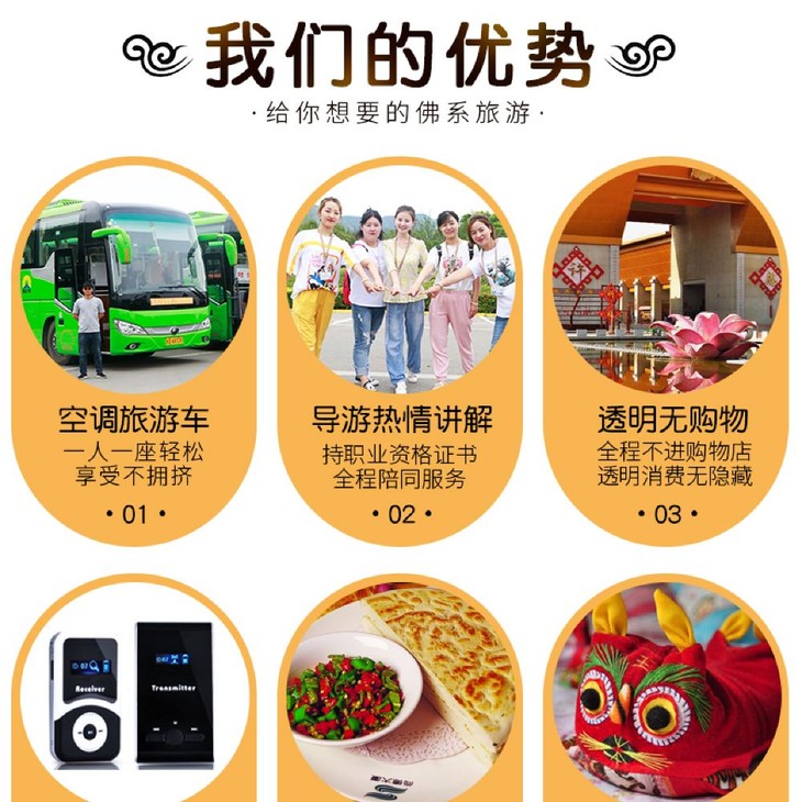 | 交通 | 全程空调旅游巴士:每人一正坐 提供往返接送服务:二环内酒店可接, |