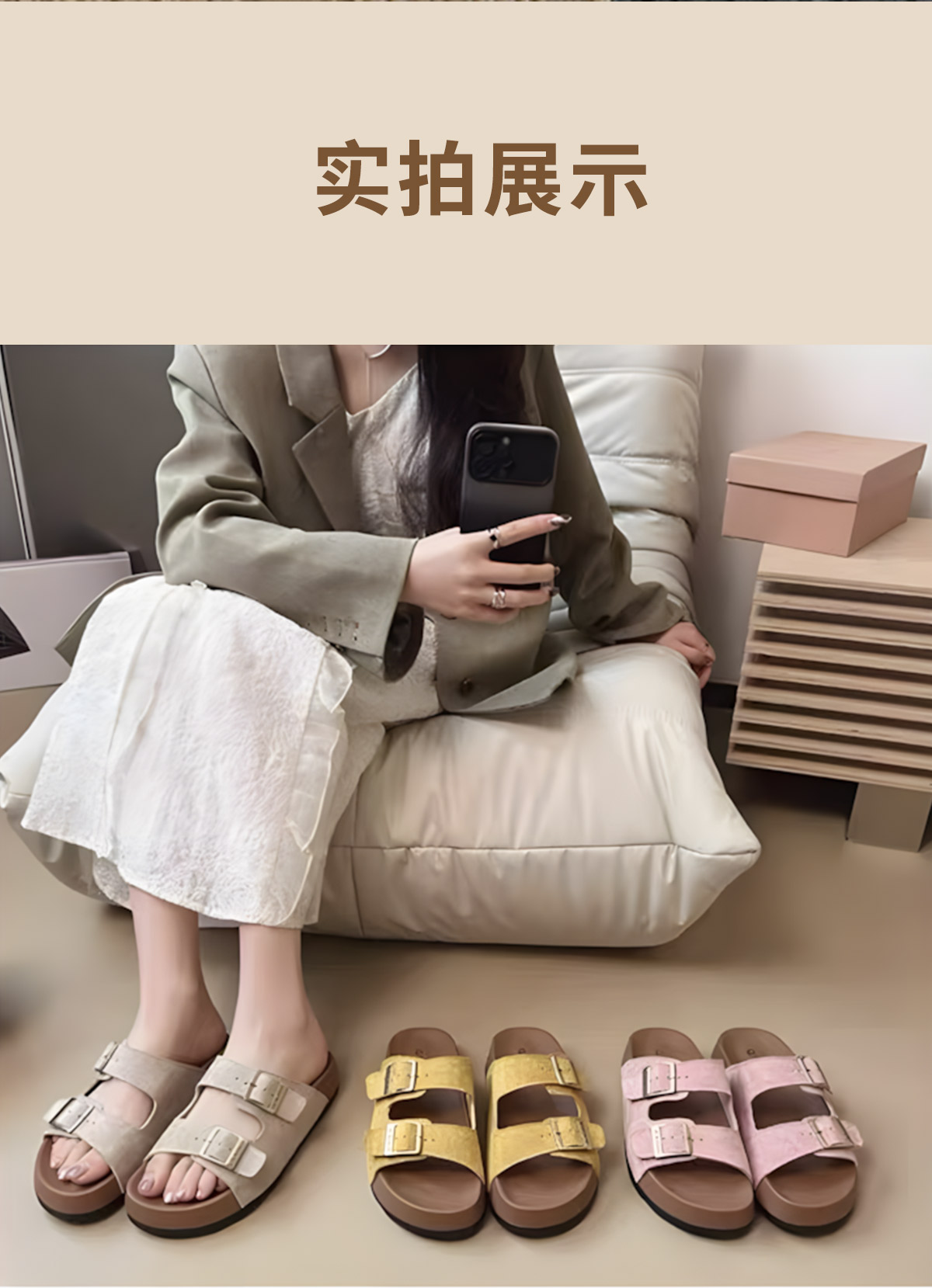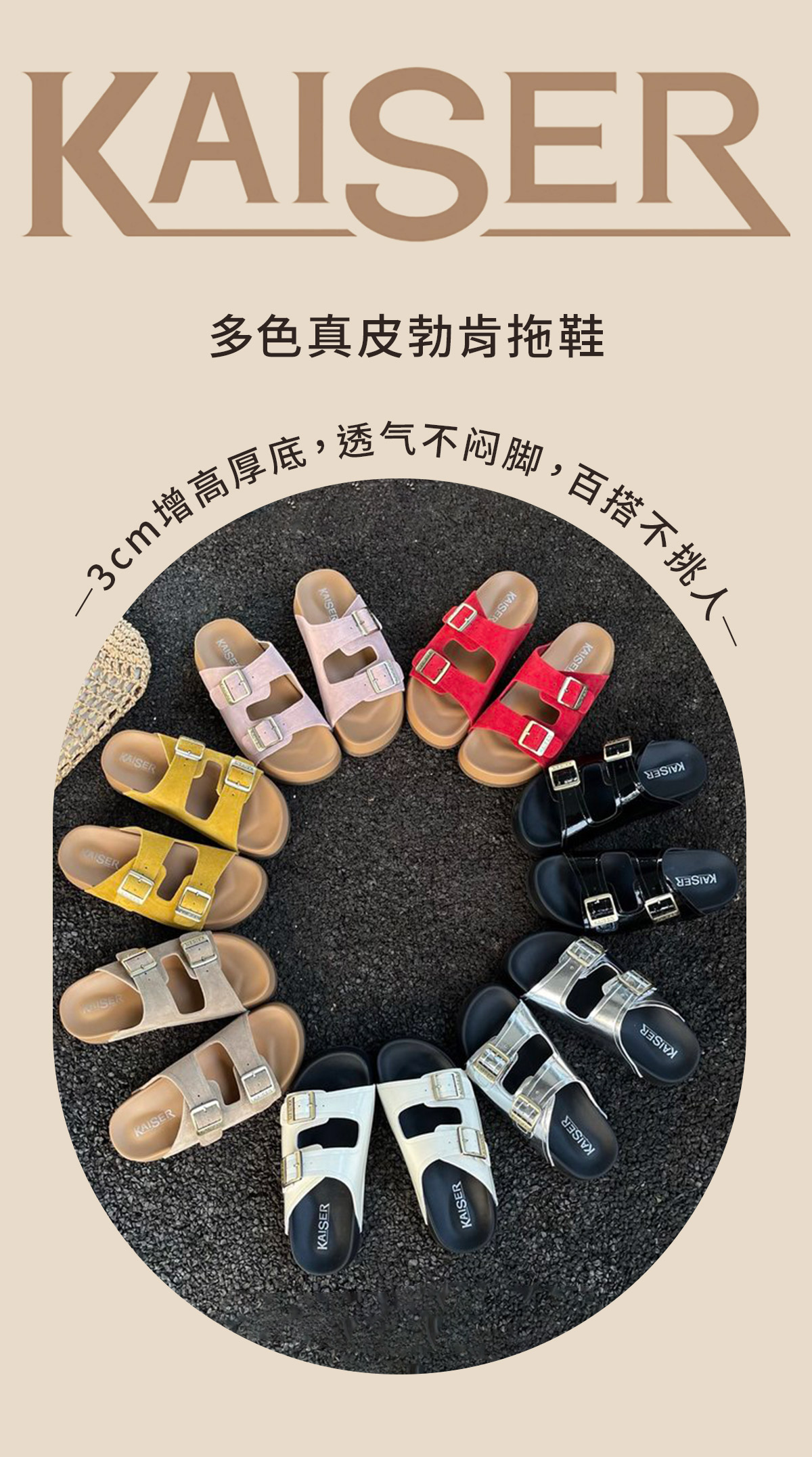 凯撒KAISER 真皮厚底勃肯拖鞋